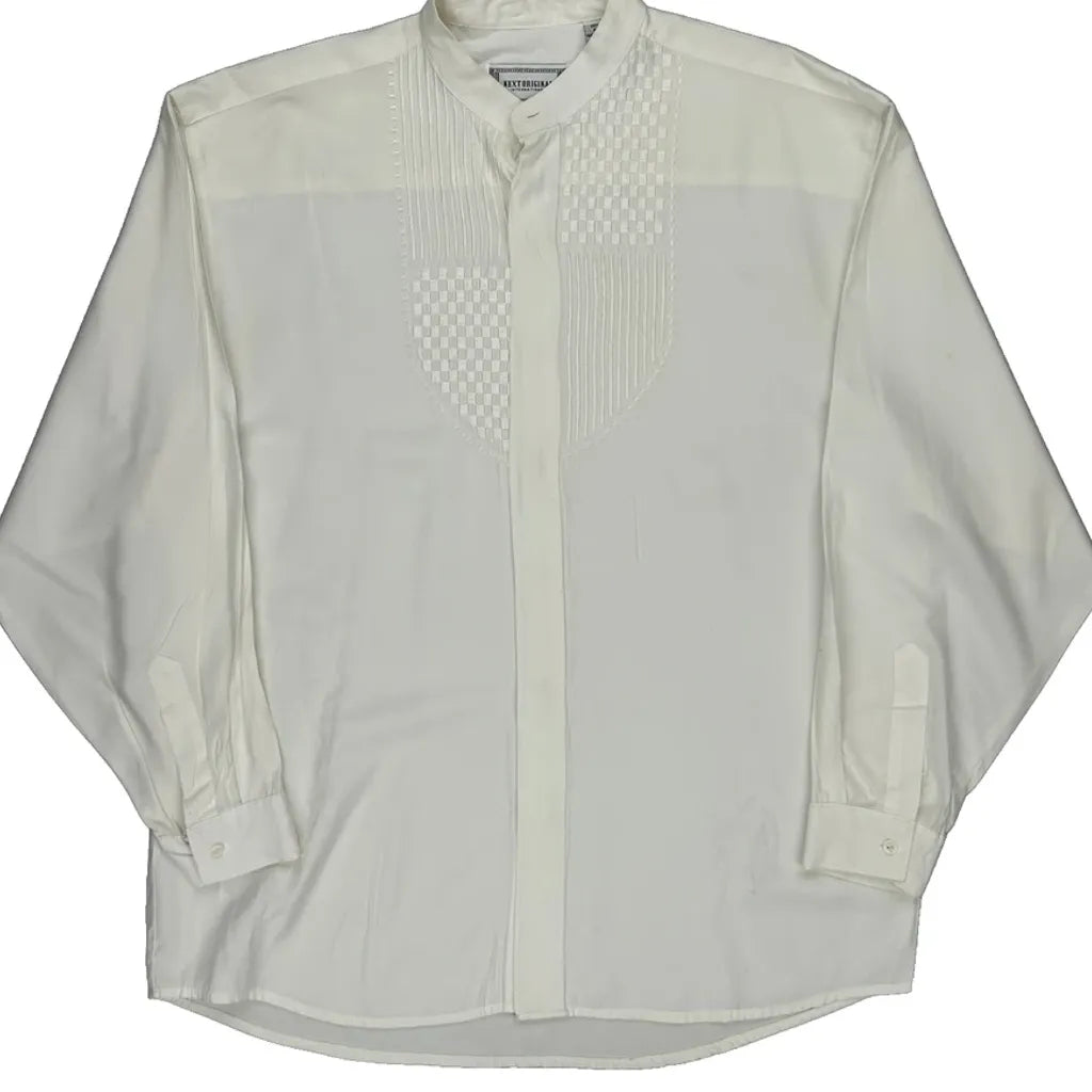 Next Collarless Shirt - Large White Viscose