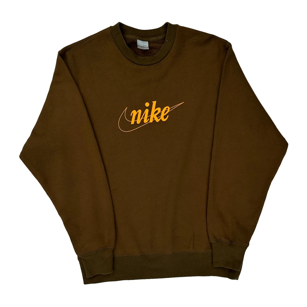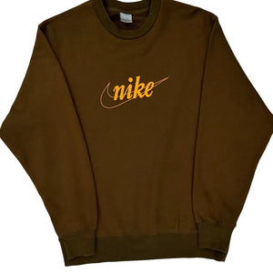 Nike Spellout Sweatshirt - Large Brown Cotton