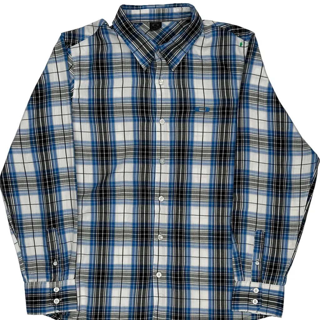 Oakley Checked Shirt - Large Blue Cotton Blend