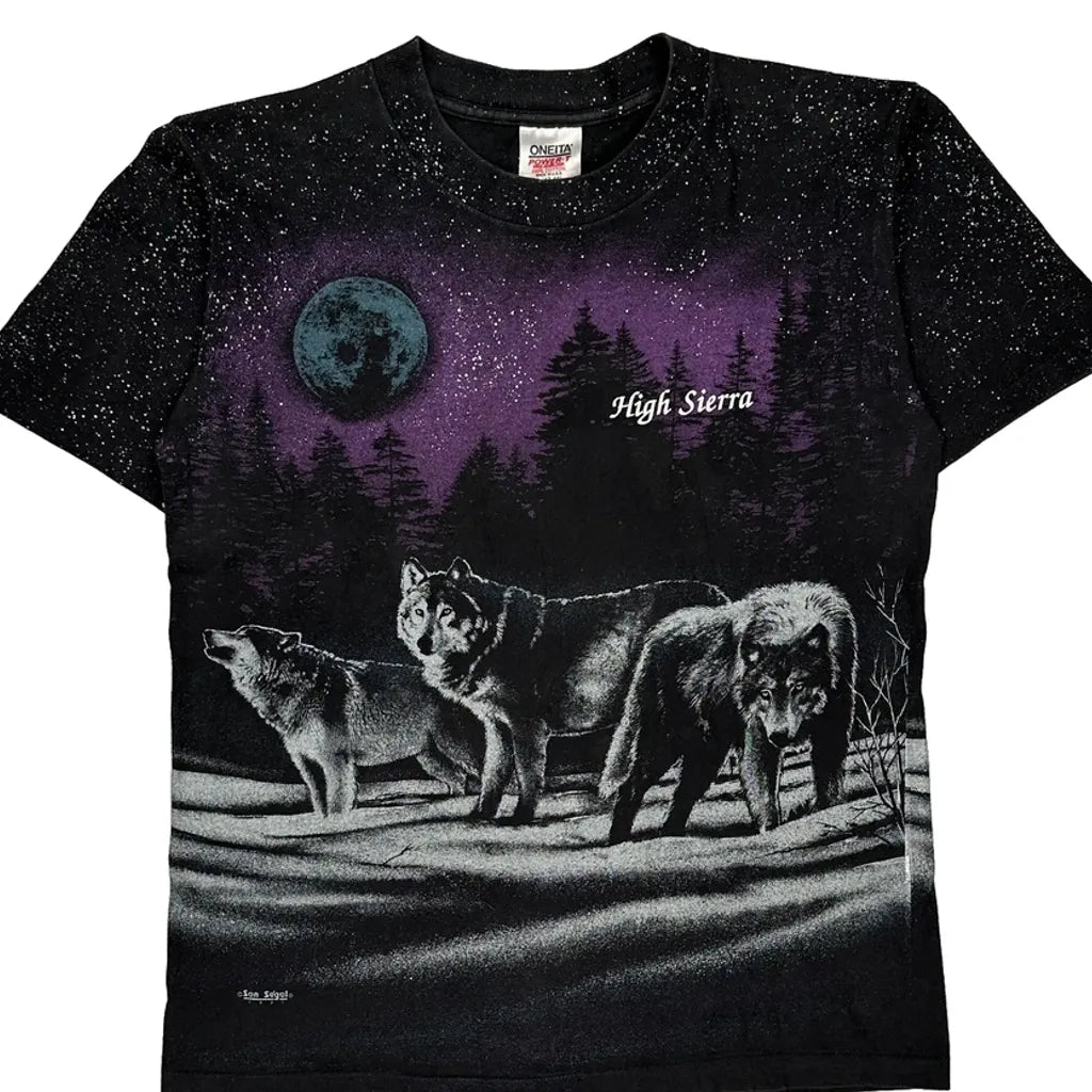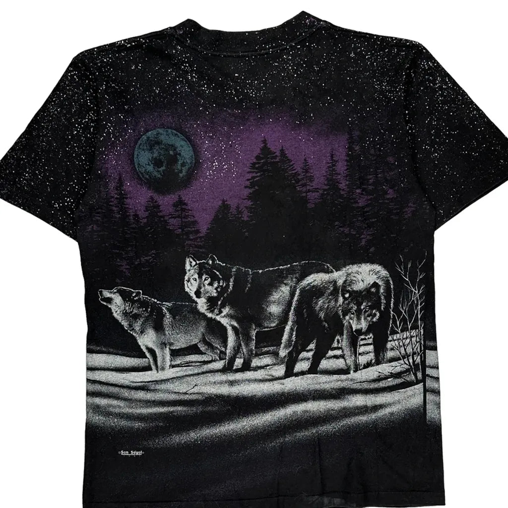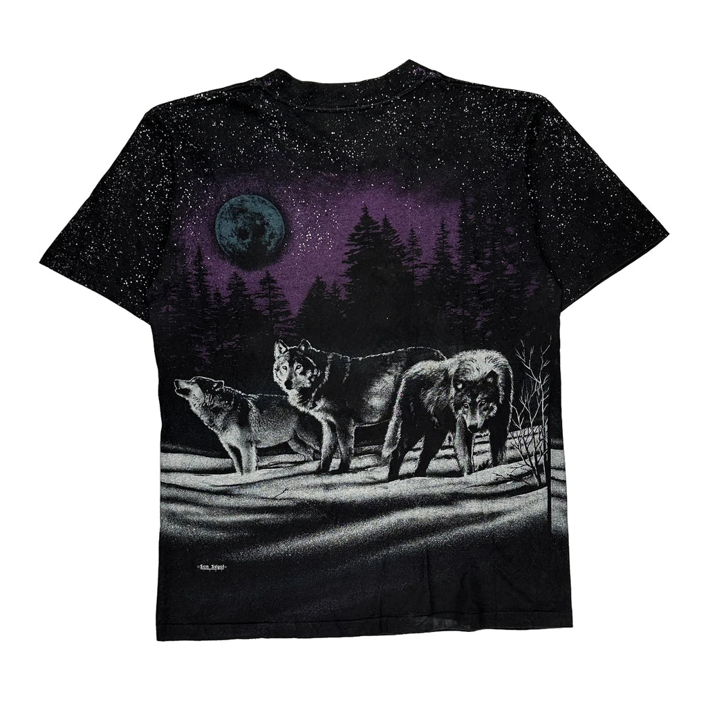 Features A Graphic Of Wolves Under A Moonlit Sky