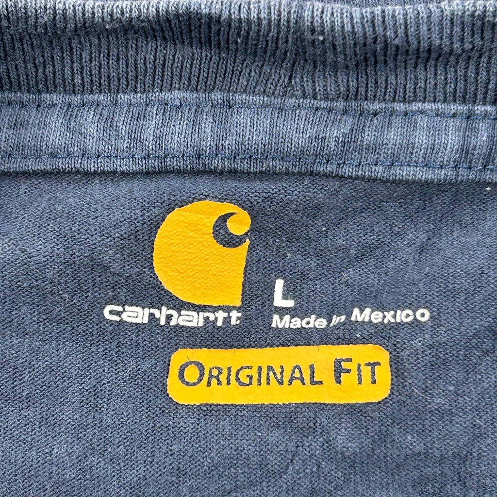 Original Fit Carhartt Spellout Long Sleeve T-Shirt - Large Navy Cotton