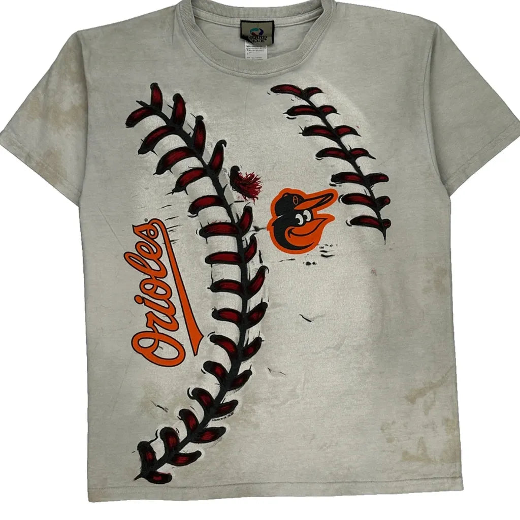 Orioles Youth Liquid Blue Graphic T-Shirt - Large White Cotton