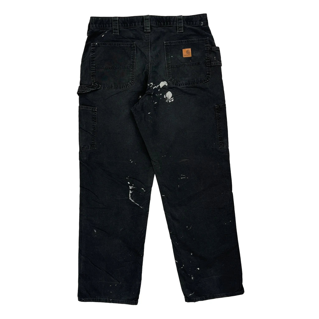 Paint Splattered Carhartt Carpenter Trousers - 34W 32L Black Cotton