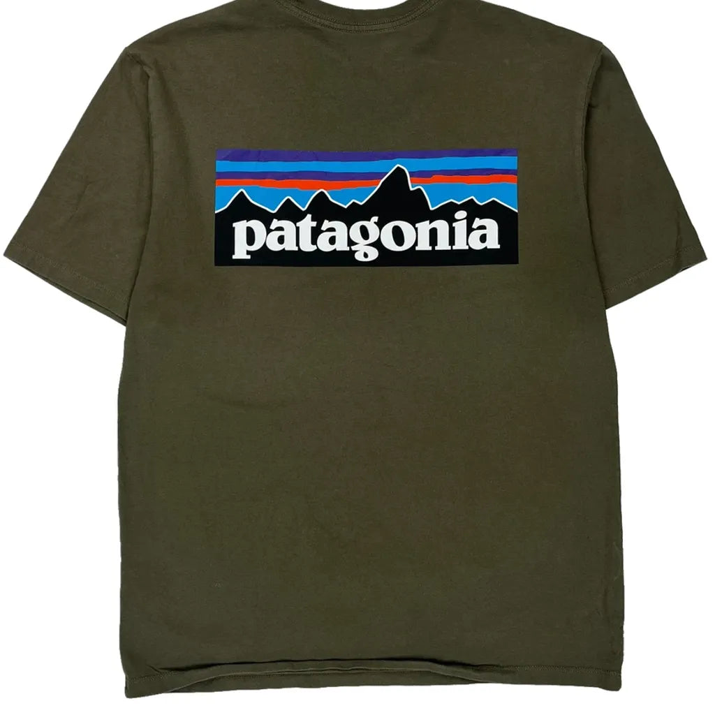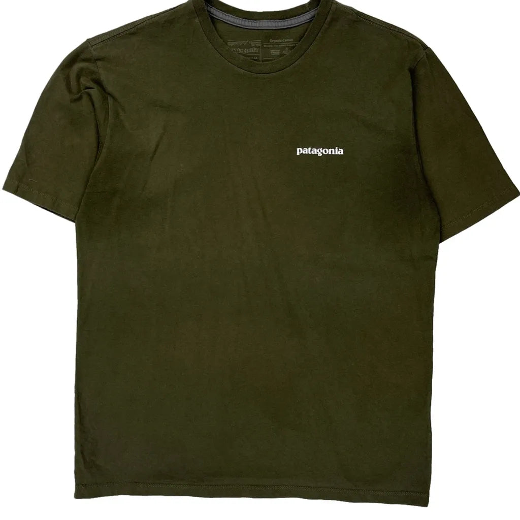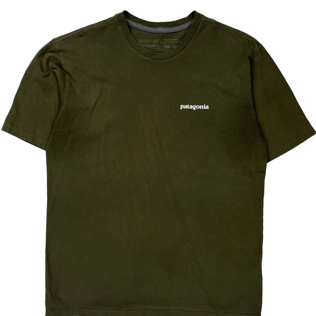 Olive Green Patagonia T-Shirt With Small Logo On Front And Large Logo On Back.