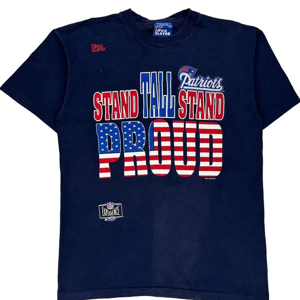 Patriots Pro Player Single Stitch T-Shirt - Large Navy Cotton