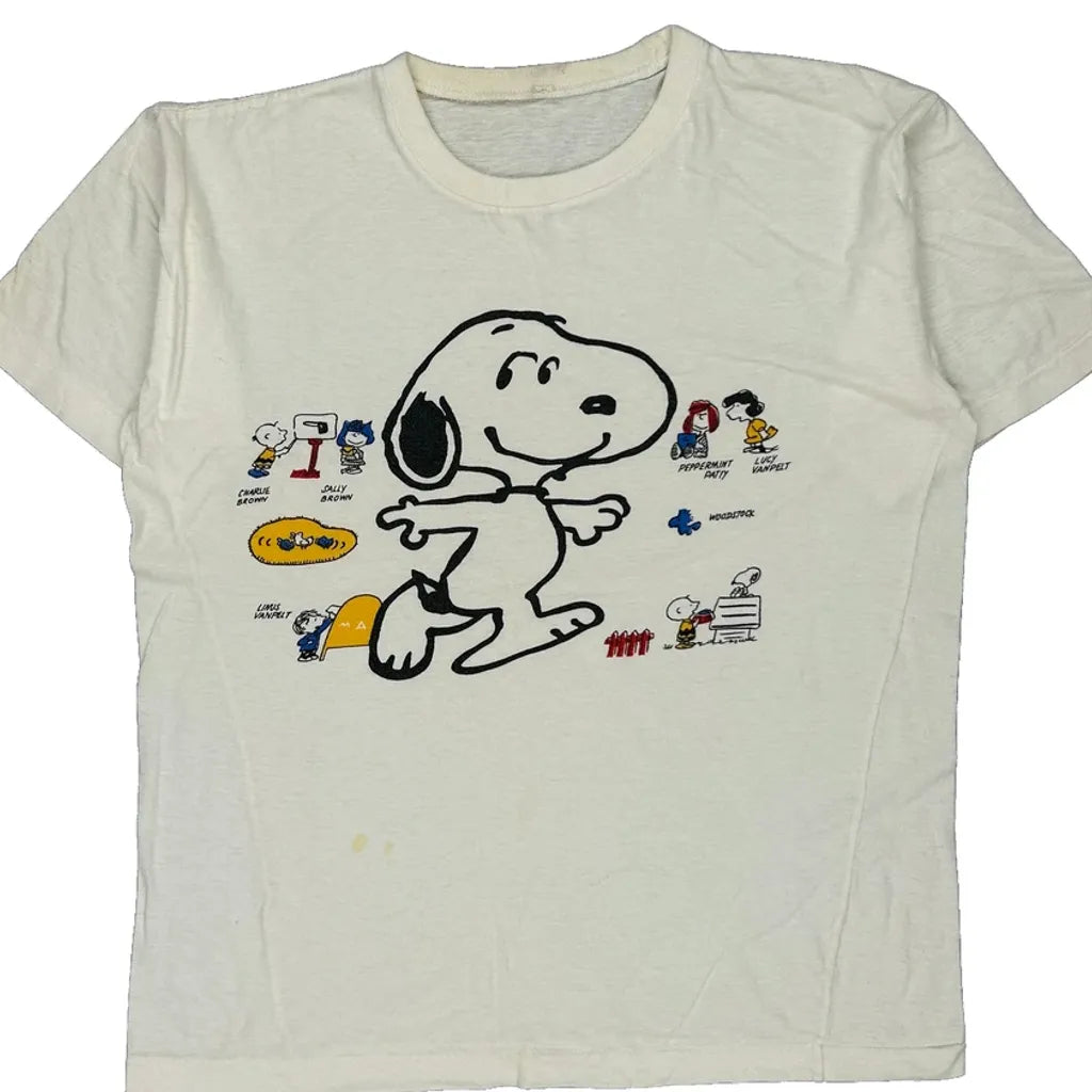 Peanuts Snoopy Single Stitch T-Shirt - Large White Cotton
