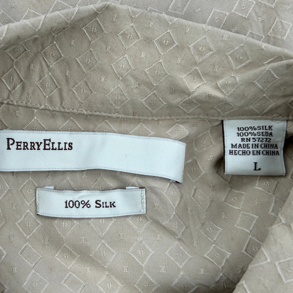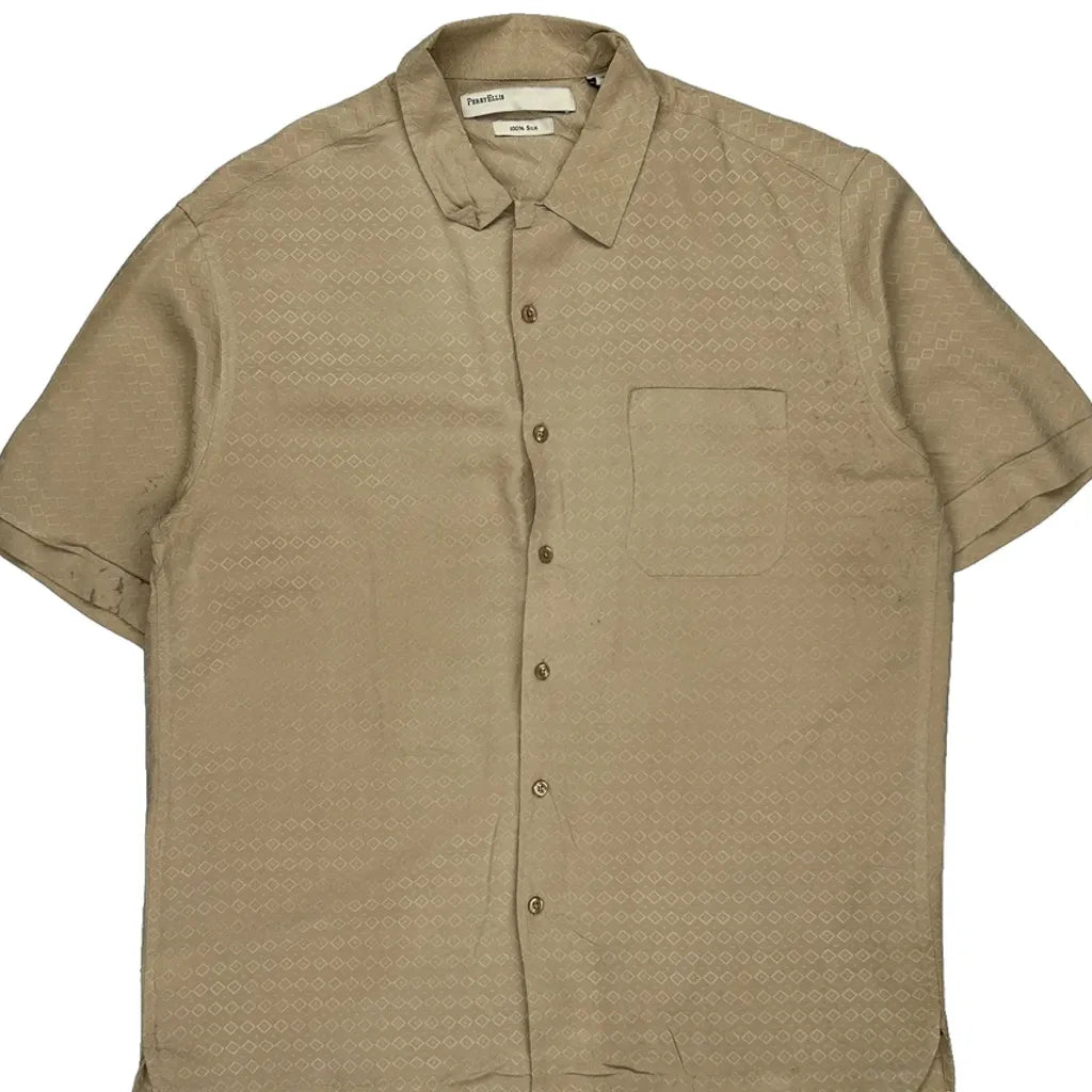 Perry Eliis Short Sleeve Shirt - Large Beige Silk