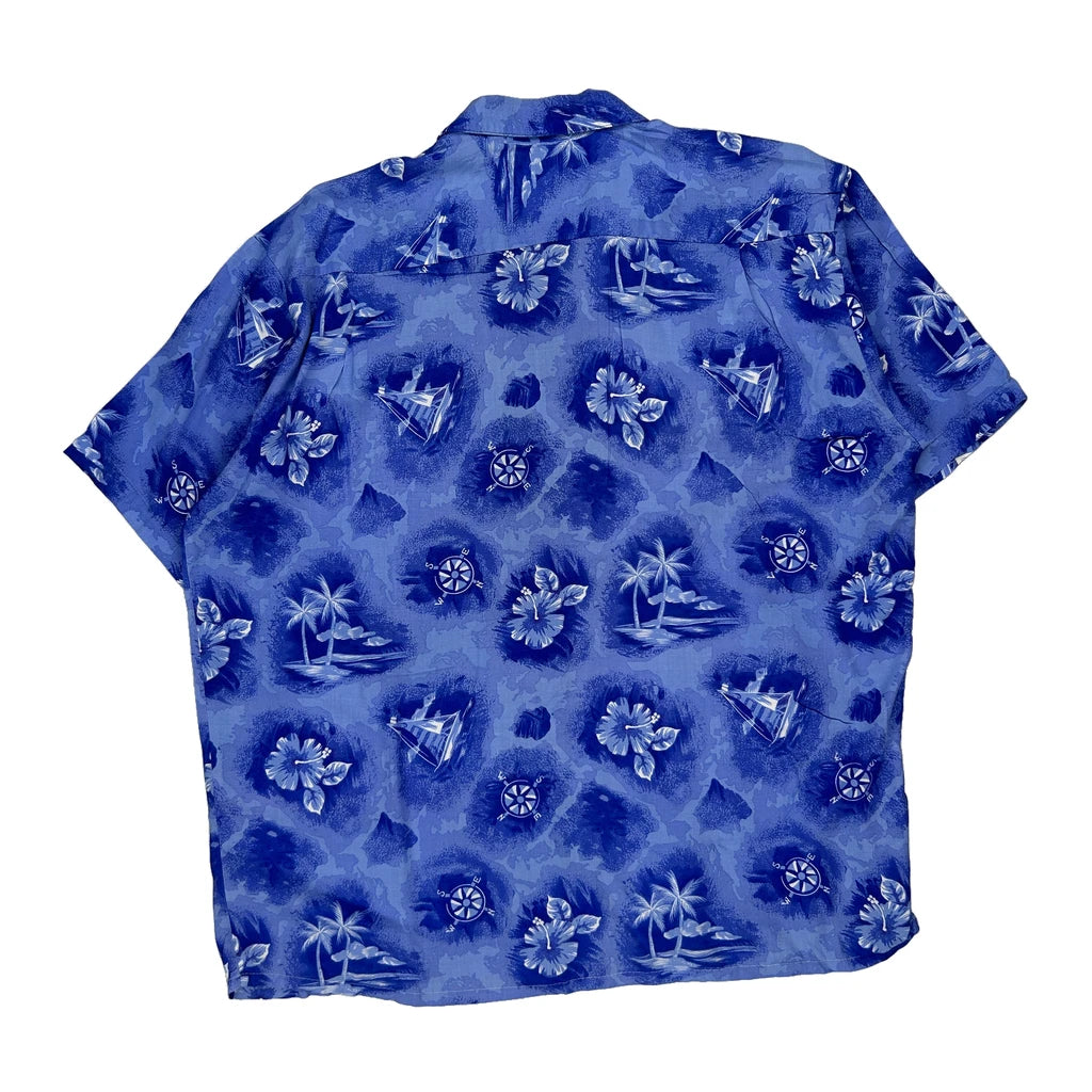 Pineapple Connection Floral Hawaiian Shirt - Large Blue Viscose