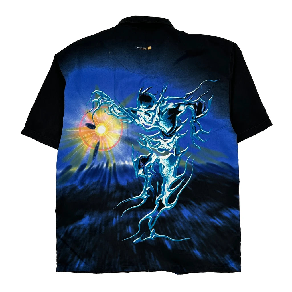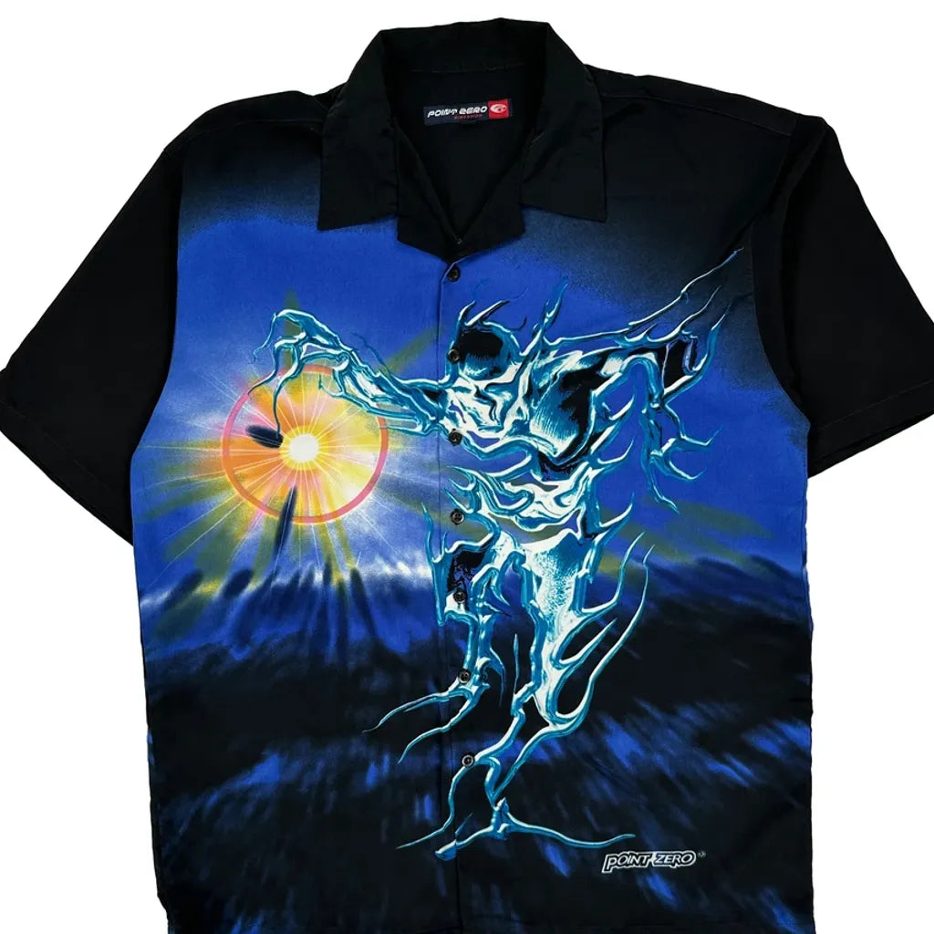 Point Zero Graphic Hawaiian Shirt - Large Black Polyester