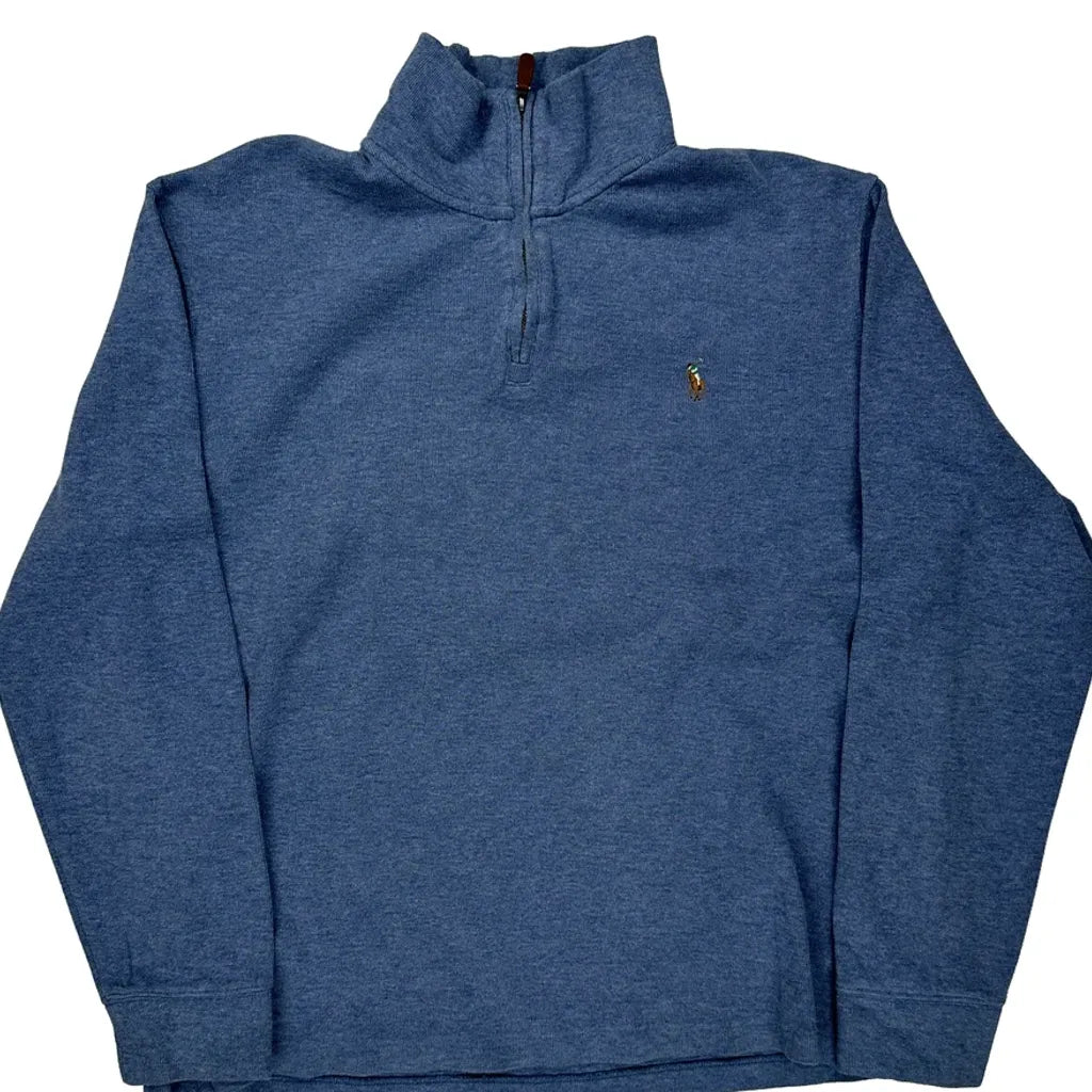 Polo By Ralph Lauren 1/4 Zip - Large Blue Cotton
