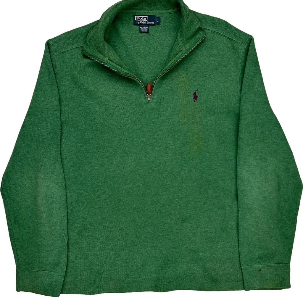 Polo By Ralph Lauren 1/4 Zip - Large Green Cotton