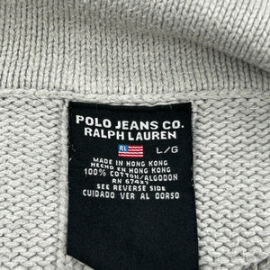 Polo By Ralph Lauren Striped 1/4 Zip - Large Grey Cotton
