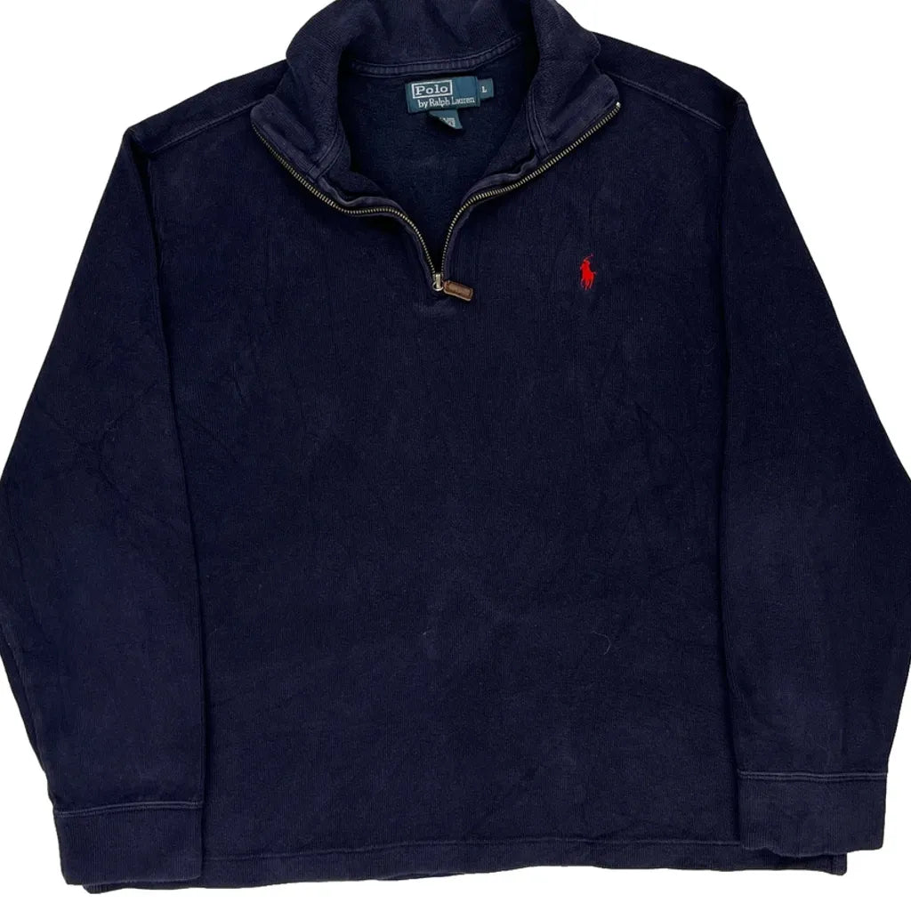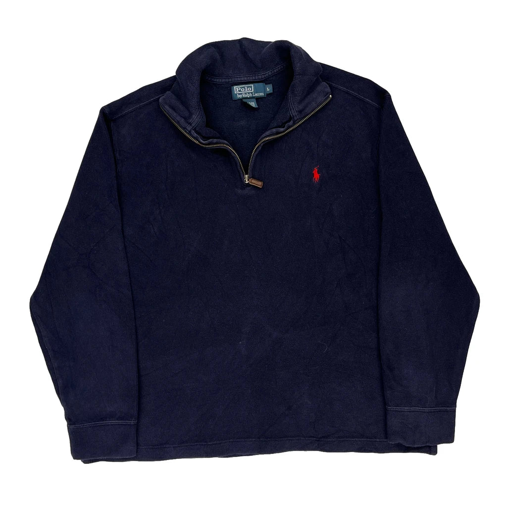 Polo By Ralph Lauren 1/4 Zip - Large Navy Cotton