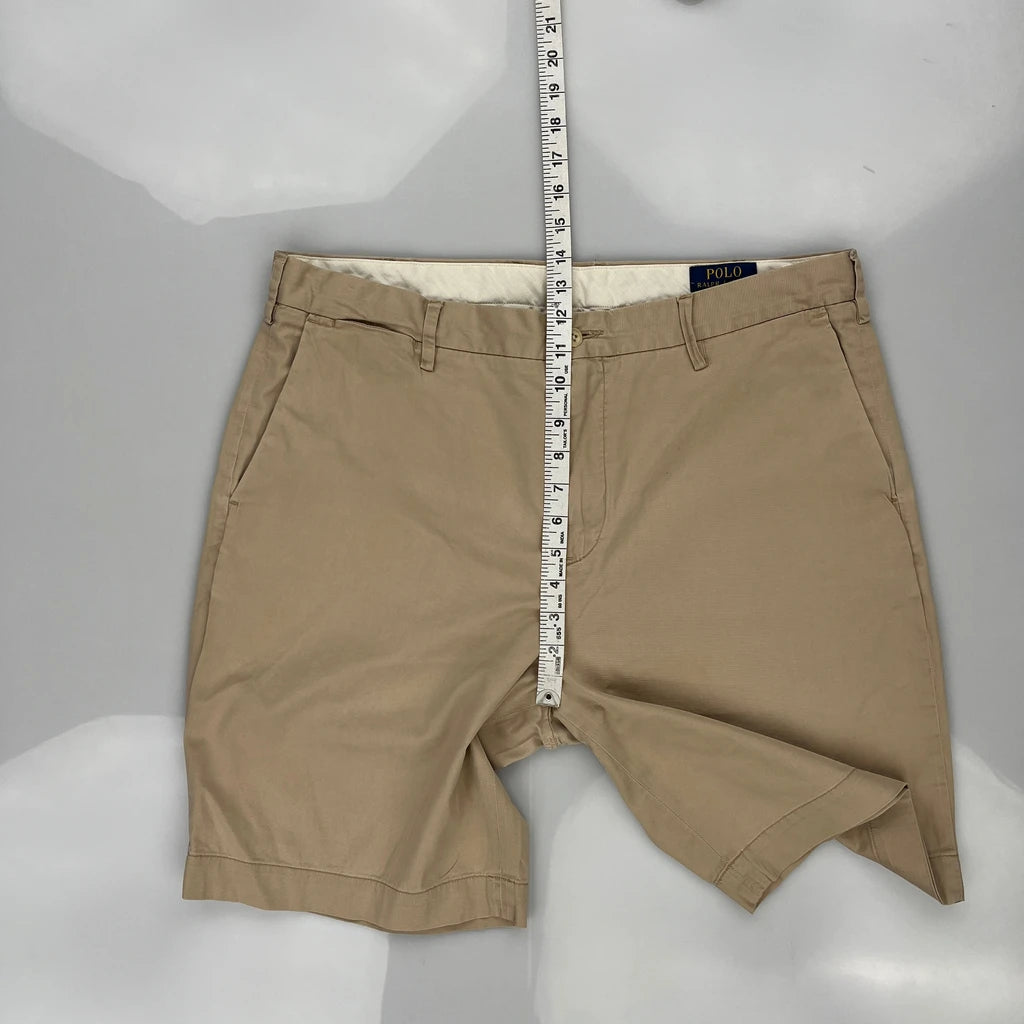 Polo By Ralph Lauren Chino Shorts, fit a 36″ Waist and 9″ inseam.