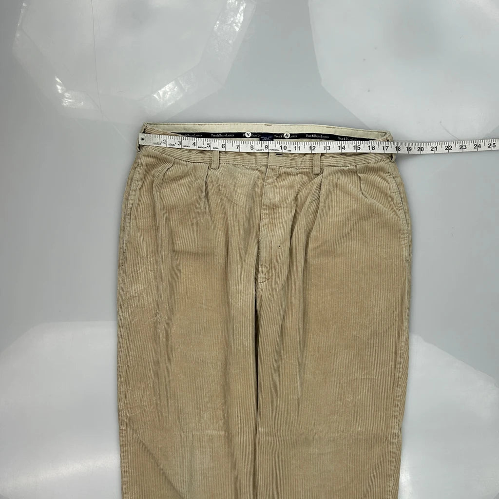 Polo By Ralph Lauren Cord Trousers - 34″ Waist Beige Cotton
