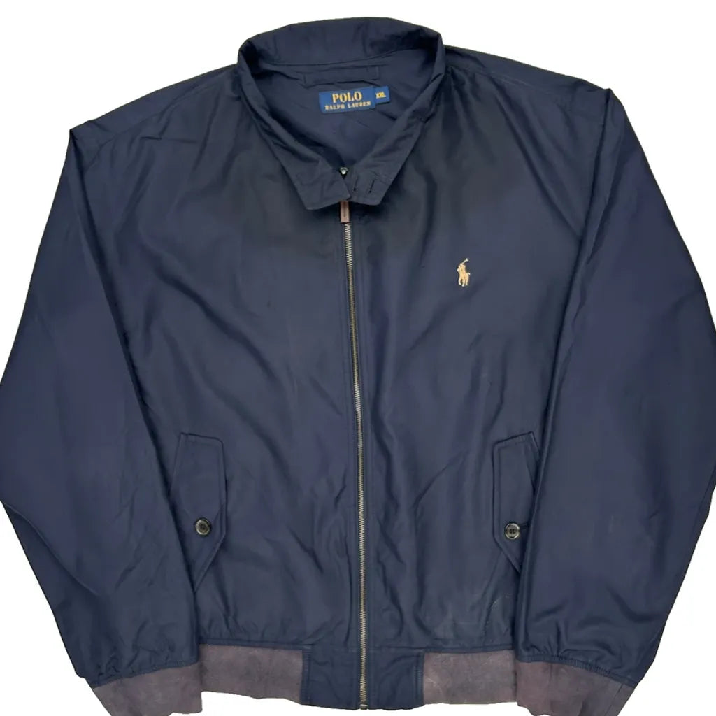 Navy Harrington Jacket With Polo Logo, Minor Wear On Cuffs
