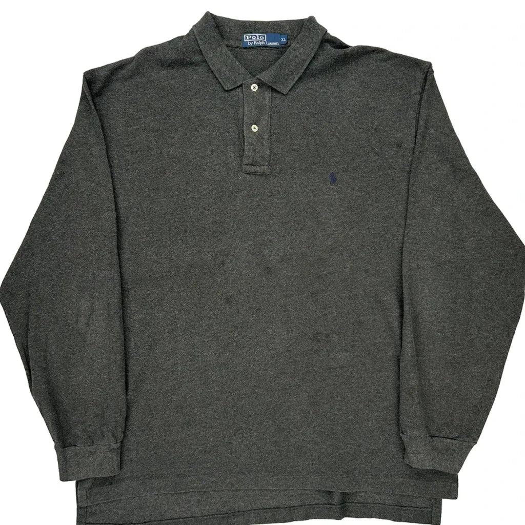 Polo By Ralph Lauren Long Sleeve Polo Shirt - XL Grey Cotton
