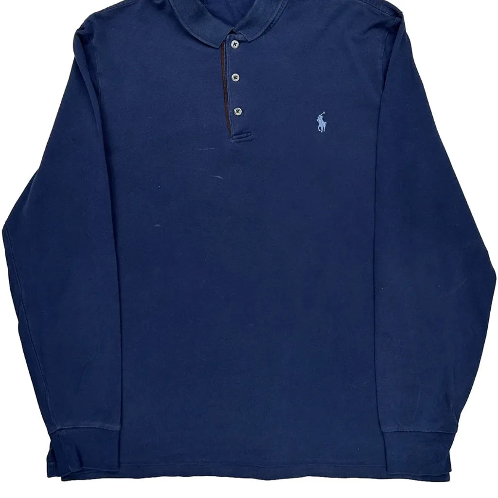 Polo By Ralph Lauren Long Sleeve Polo Shirt - Large Navy Cotton