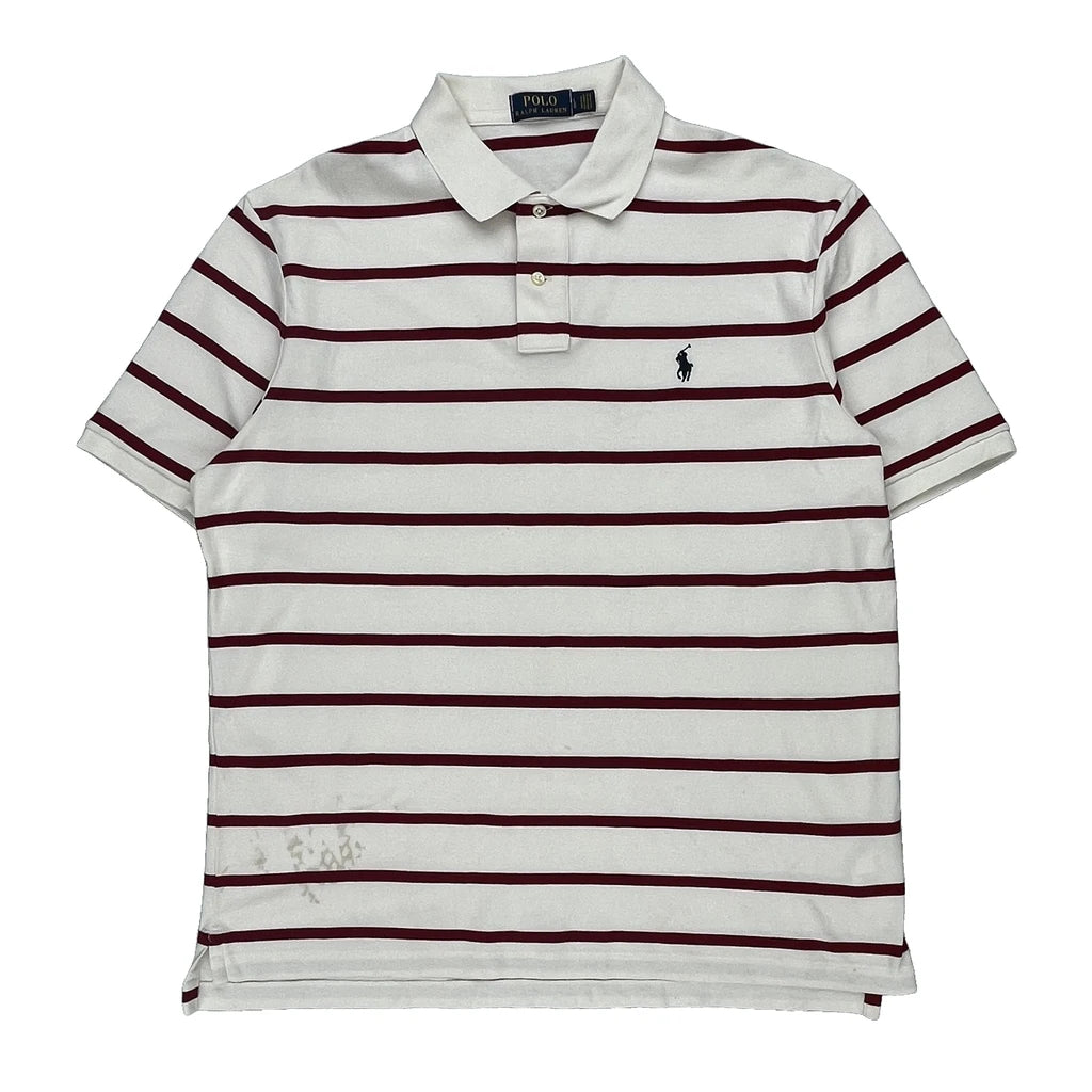Polo By Ralph Lauren Striped Polo Shirt - Large Red Cotton