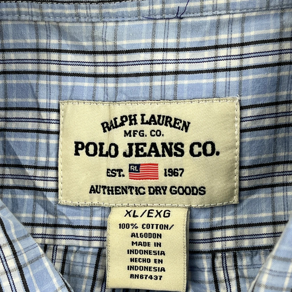 Polo By Ralph Lauren Checked Short Sleeve Shirt - XL Blue Cotton