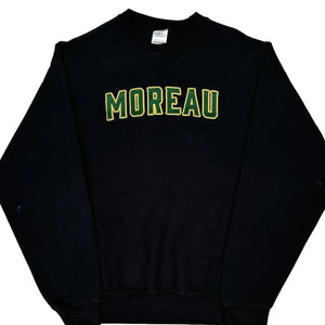 Black Sweatshirt With 'Moreau' Text In Green And Yellow.