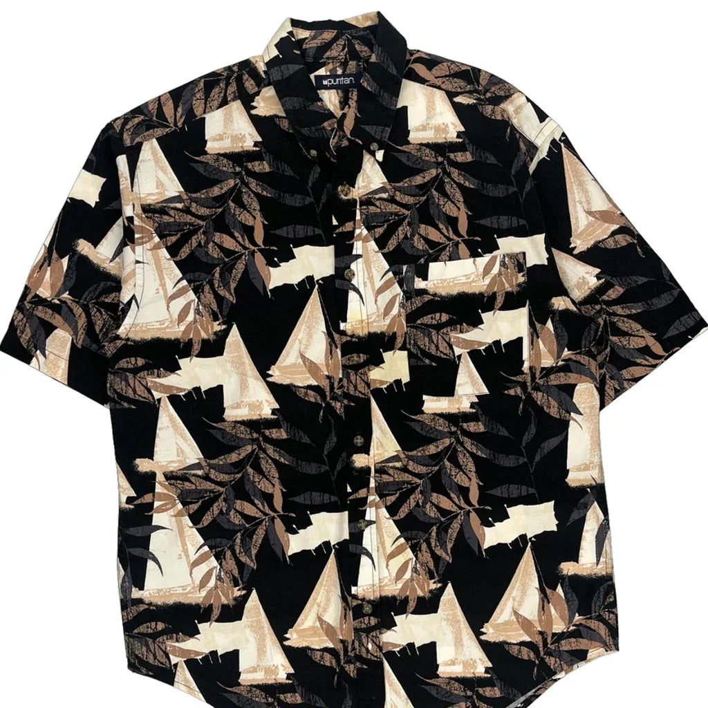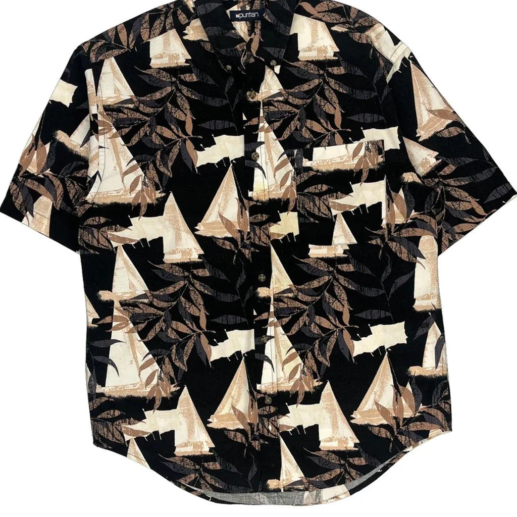 Puritan Hawaiian Shirt - Medium Black Cotton