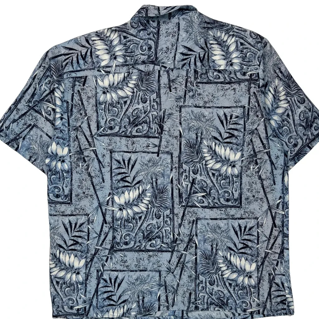 Puritan Floral Hawaiian Shirt - Large Blue Viscose