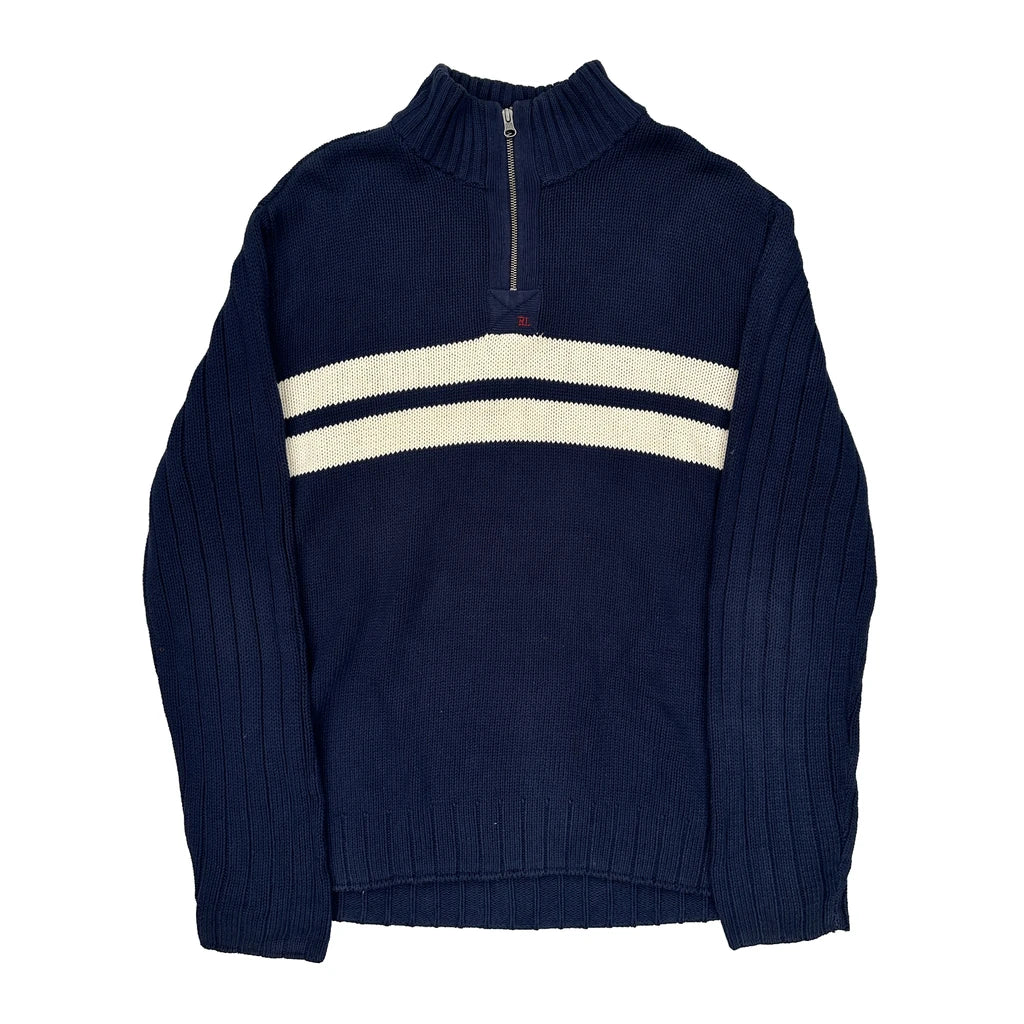 Ralph Lauren Striped 1/4 Zip - 2XL White Cotton