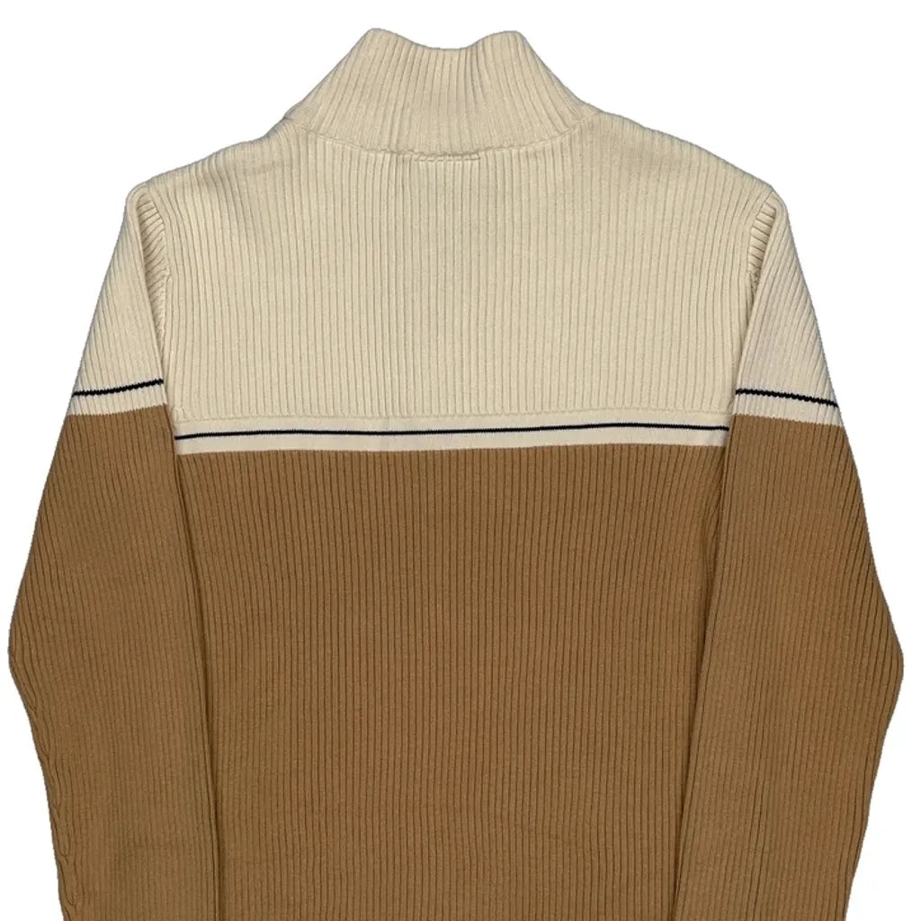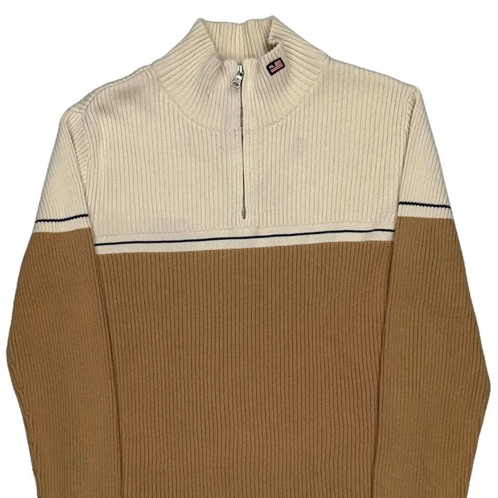 Ralph Lauren Striped 1/4 Zip - Large Brown Cotton