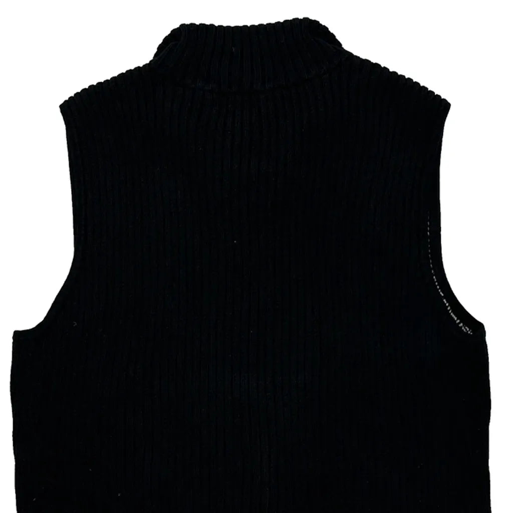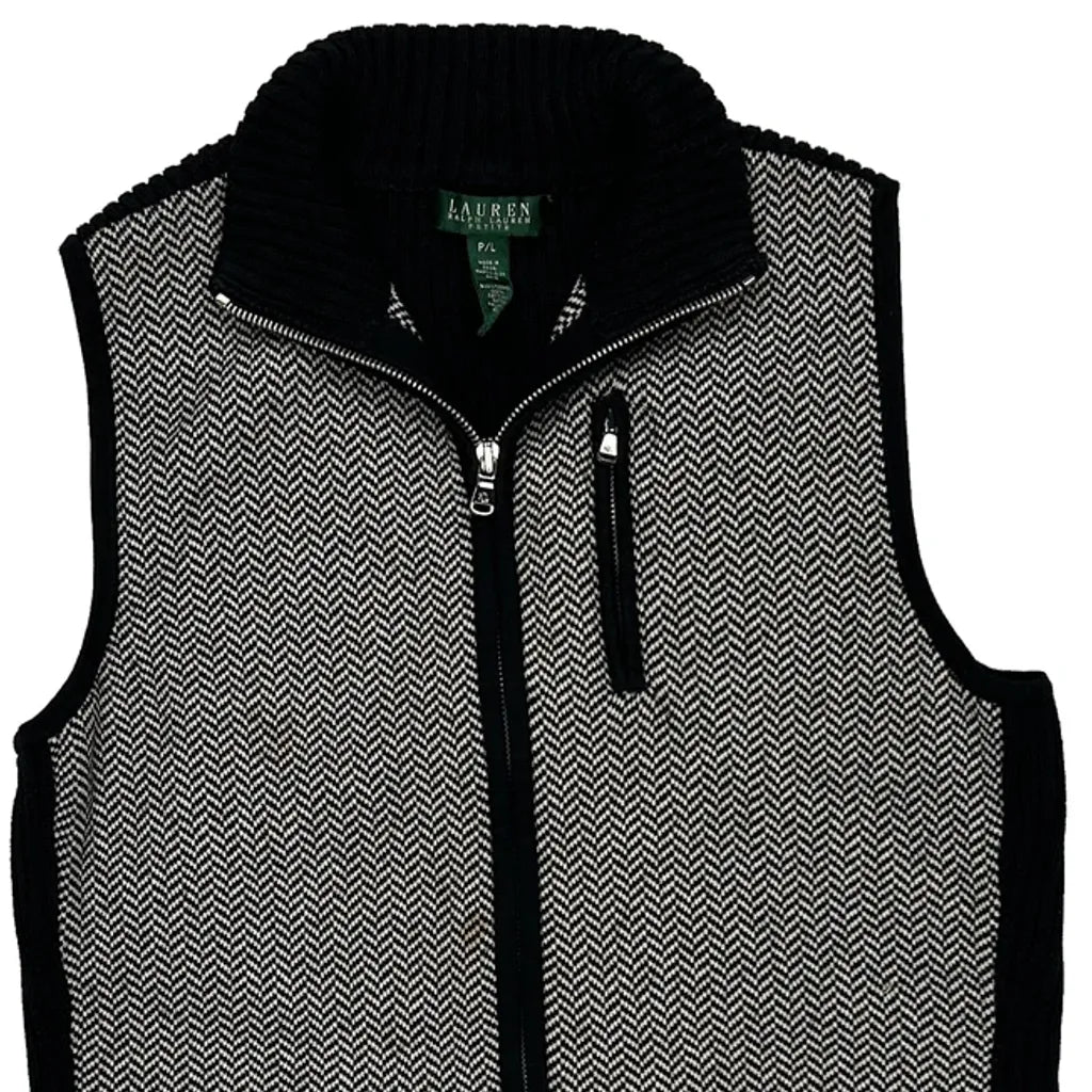 Ralph Lauren Petite Herringbone Mock Neck Gilet - Large Black & White Cotton