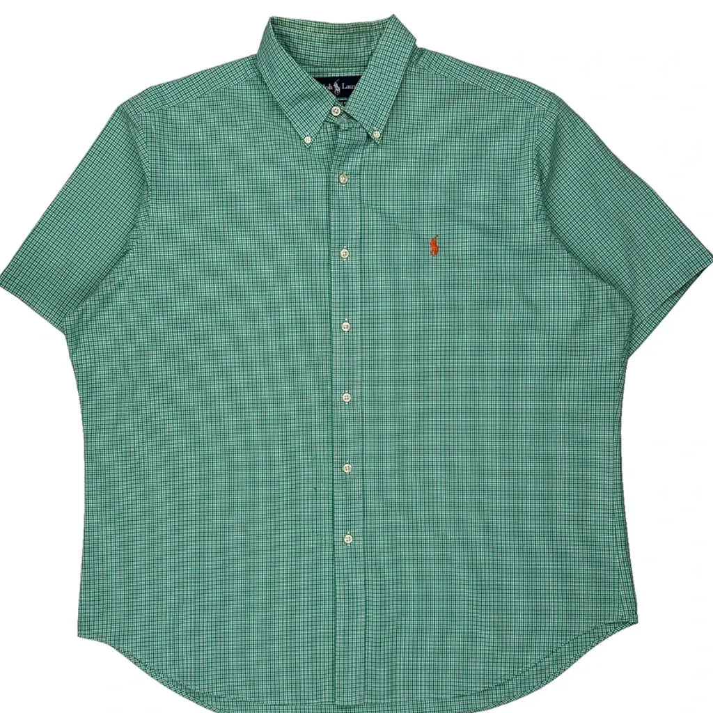 Ralph Lauren Checked Short Sleeve Shirt - XL Green Cotton