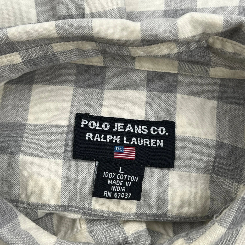Ralph Lauren Checked Short Sleeve Shirt - Large Grey Cotton