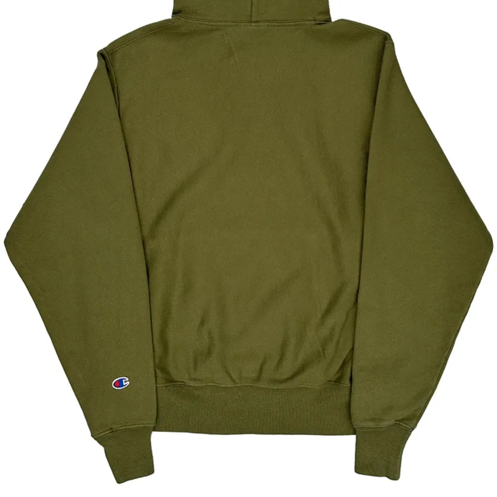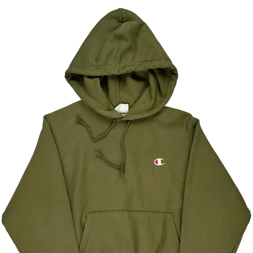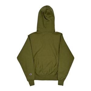 Reverse Weave Champion Hoodie - Small Khaki Cotton Blend