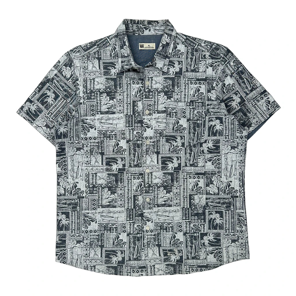 Rivers Graphic Hawaiian Shirt - XL Black & White Cotton