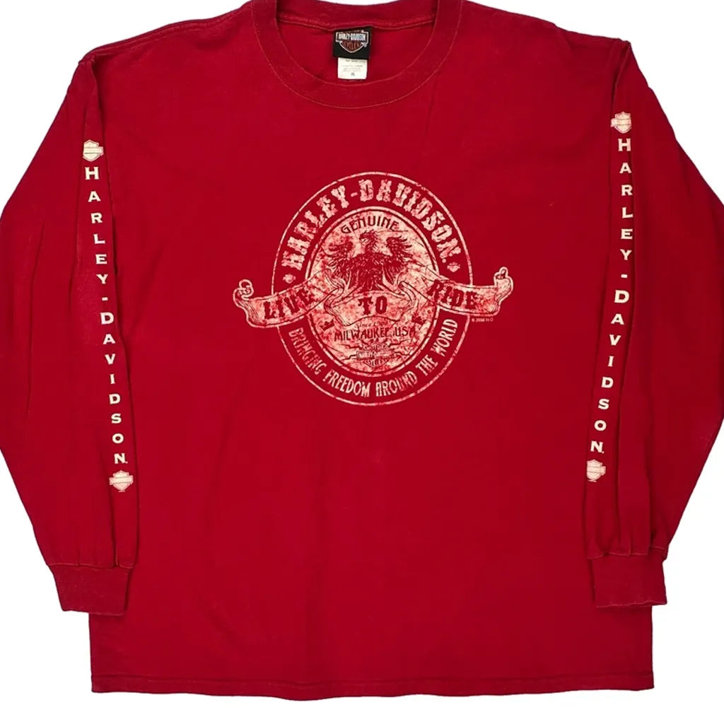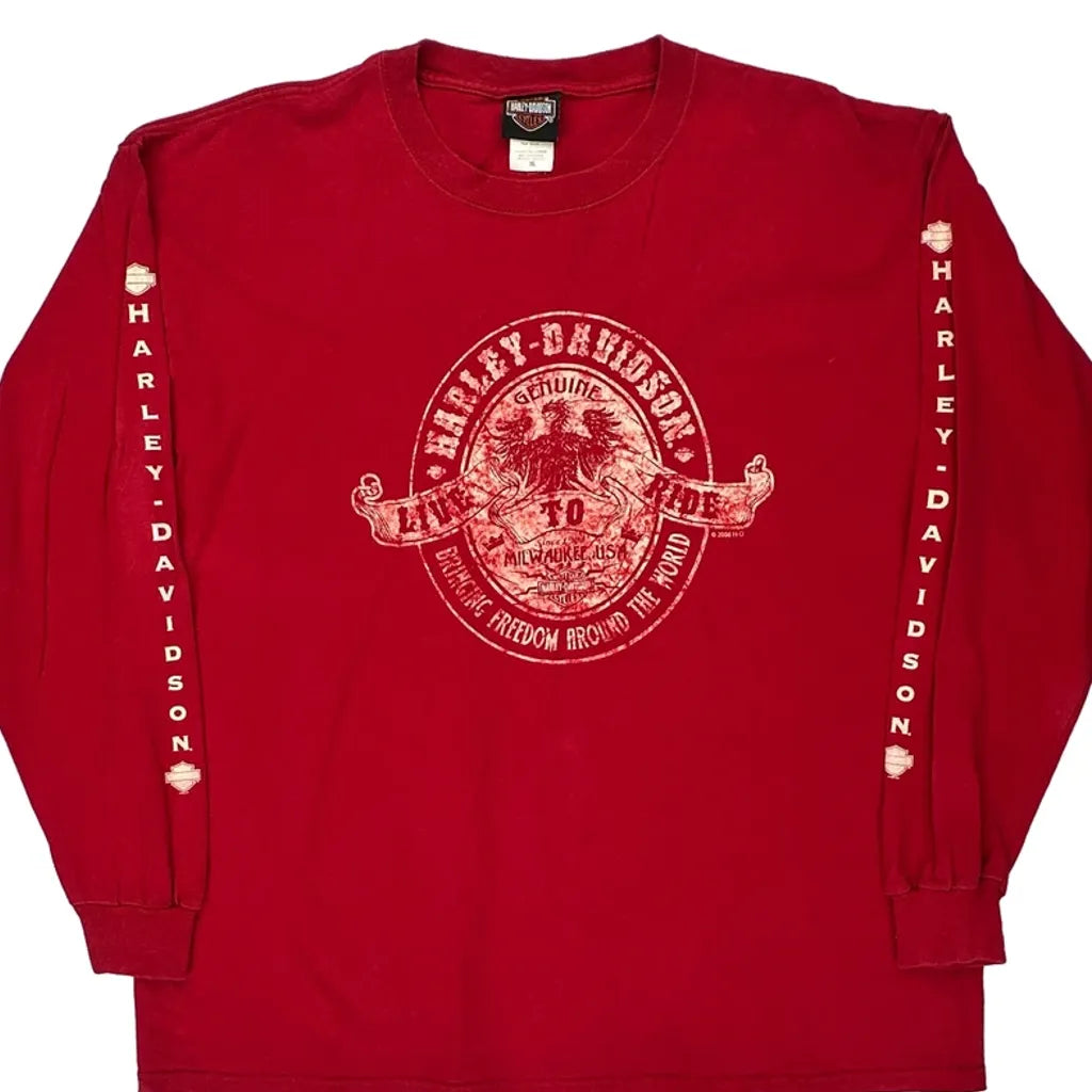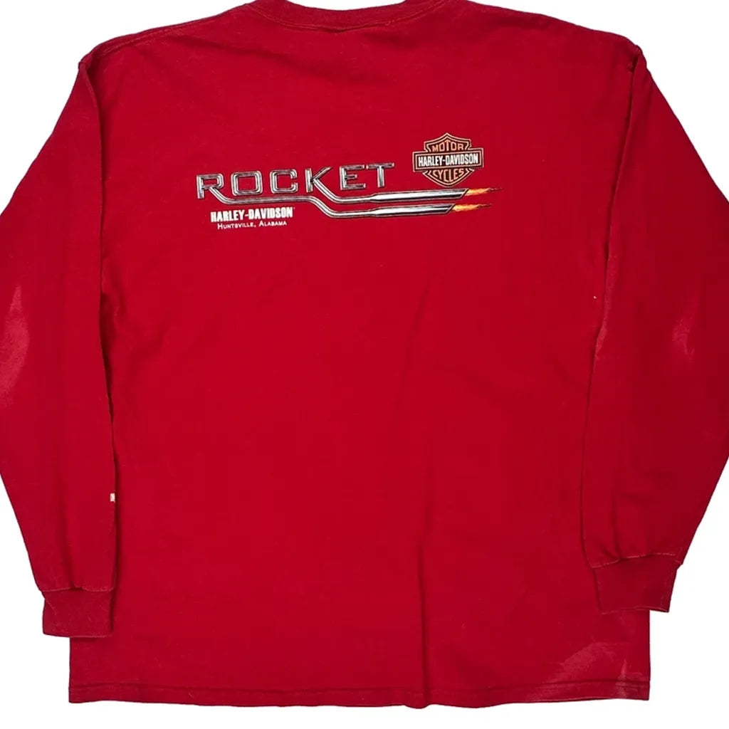 Rocket Harley Davidson Graphic Long Sleeve T-Shirt - XL Red Cotton