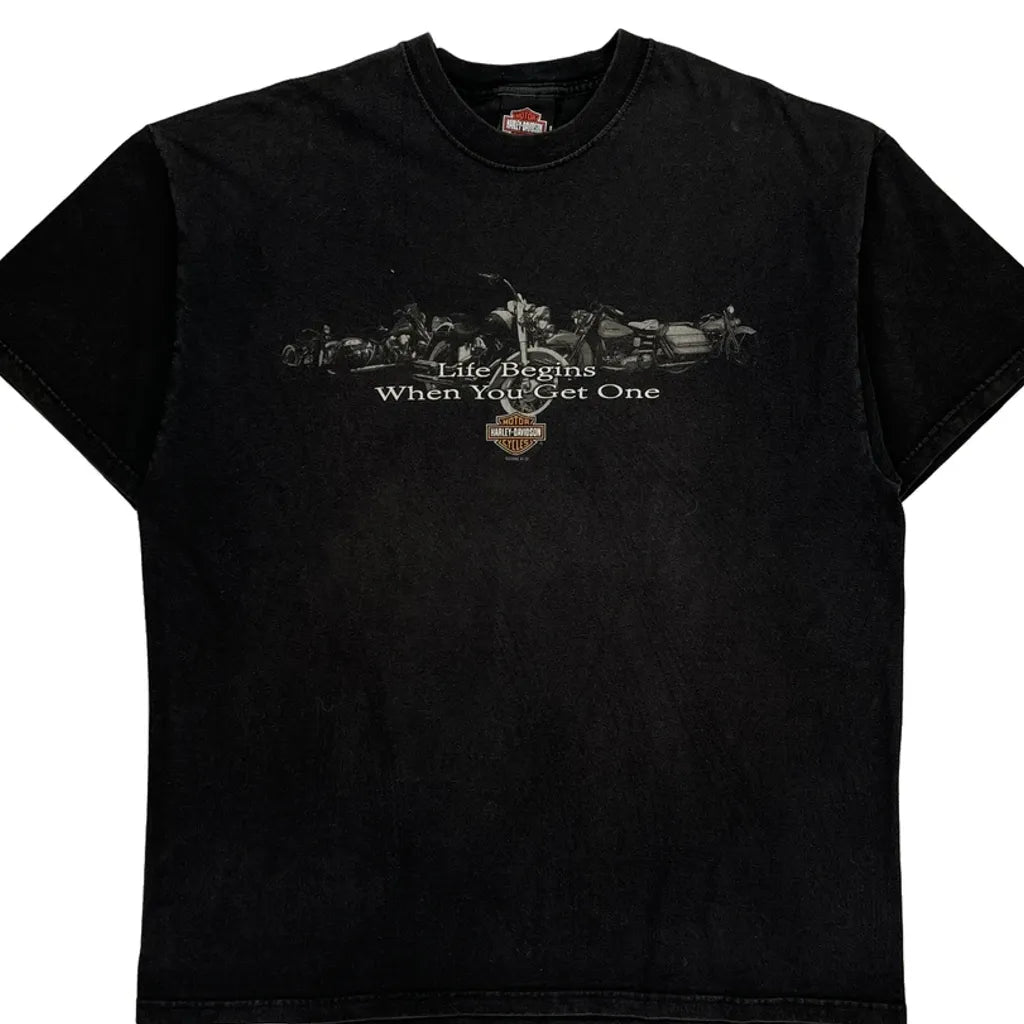 Route 66 Harley Davidson Graphic T-Shirt - XL Black Cotton