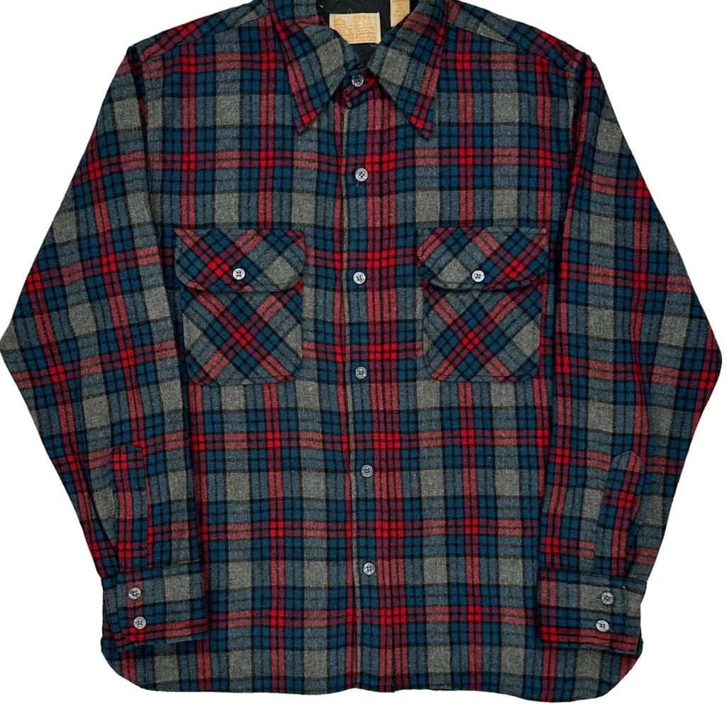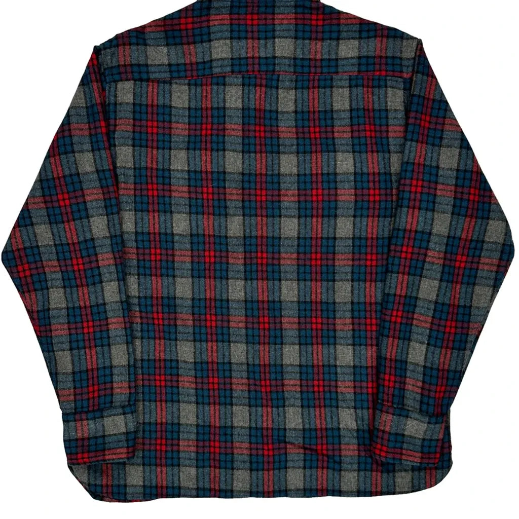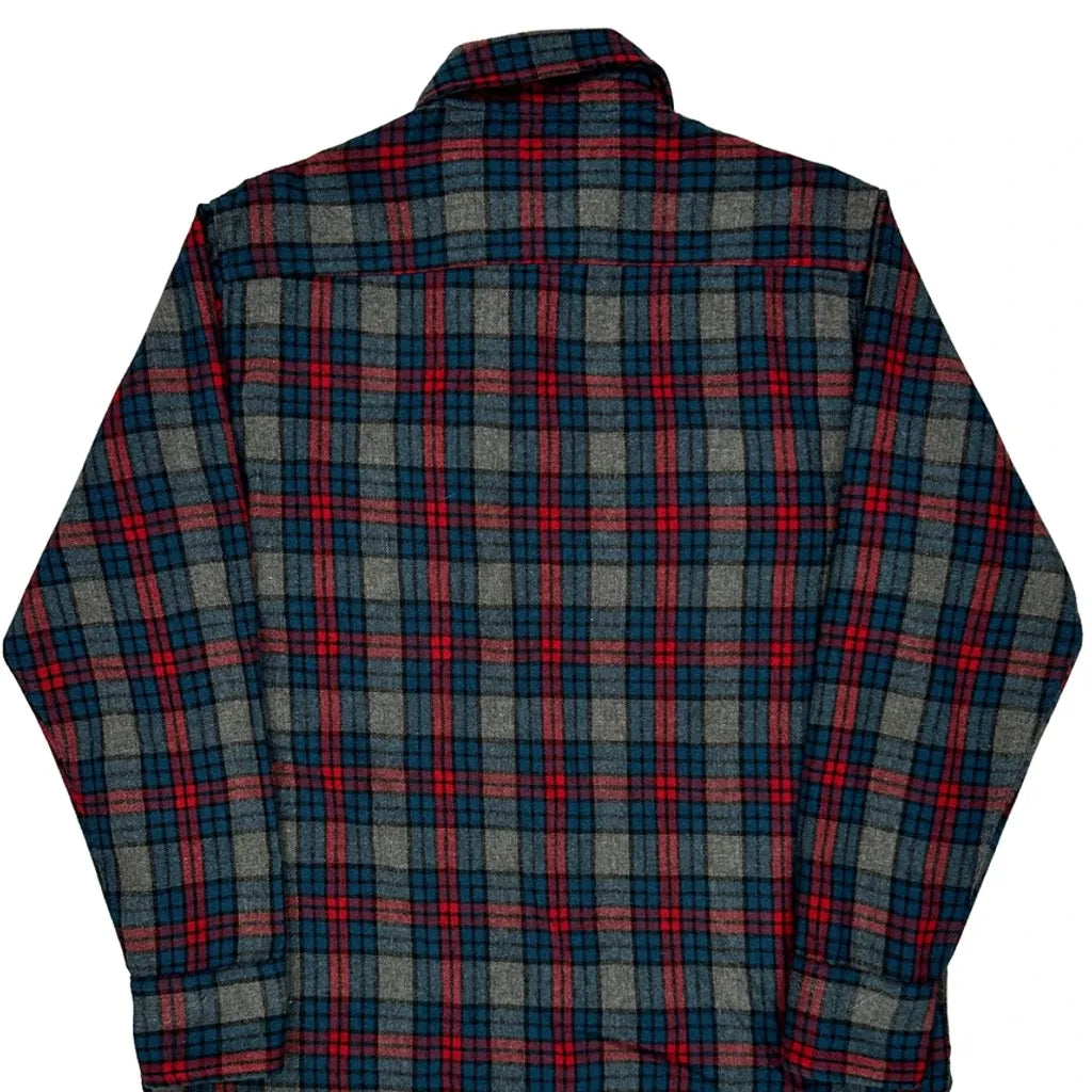 Sears Checked Flannel Shirt - Medium Blue Wool Blend