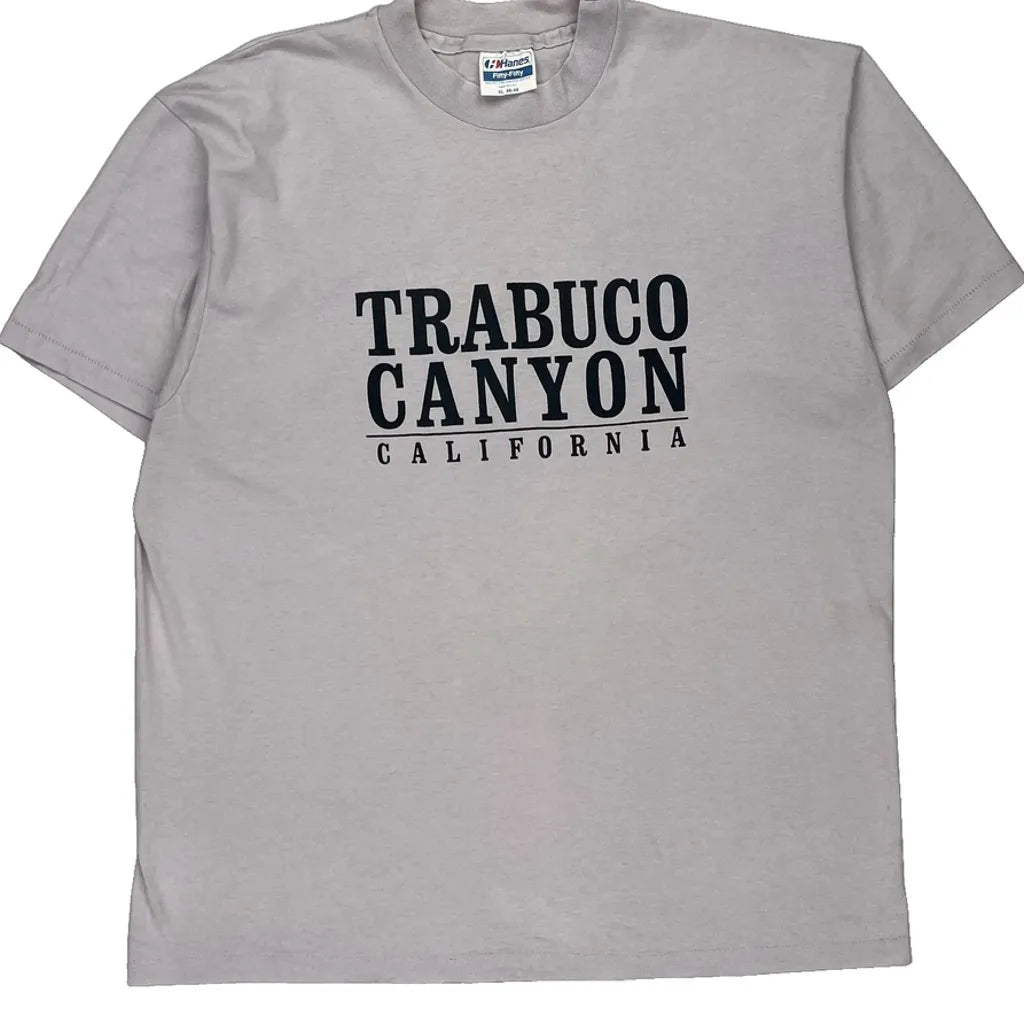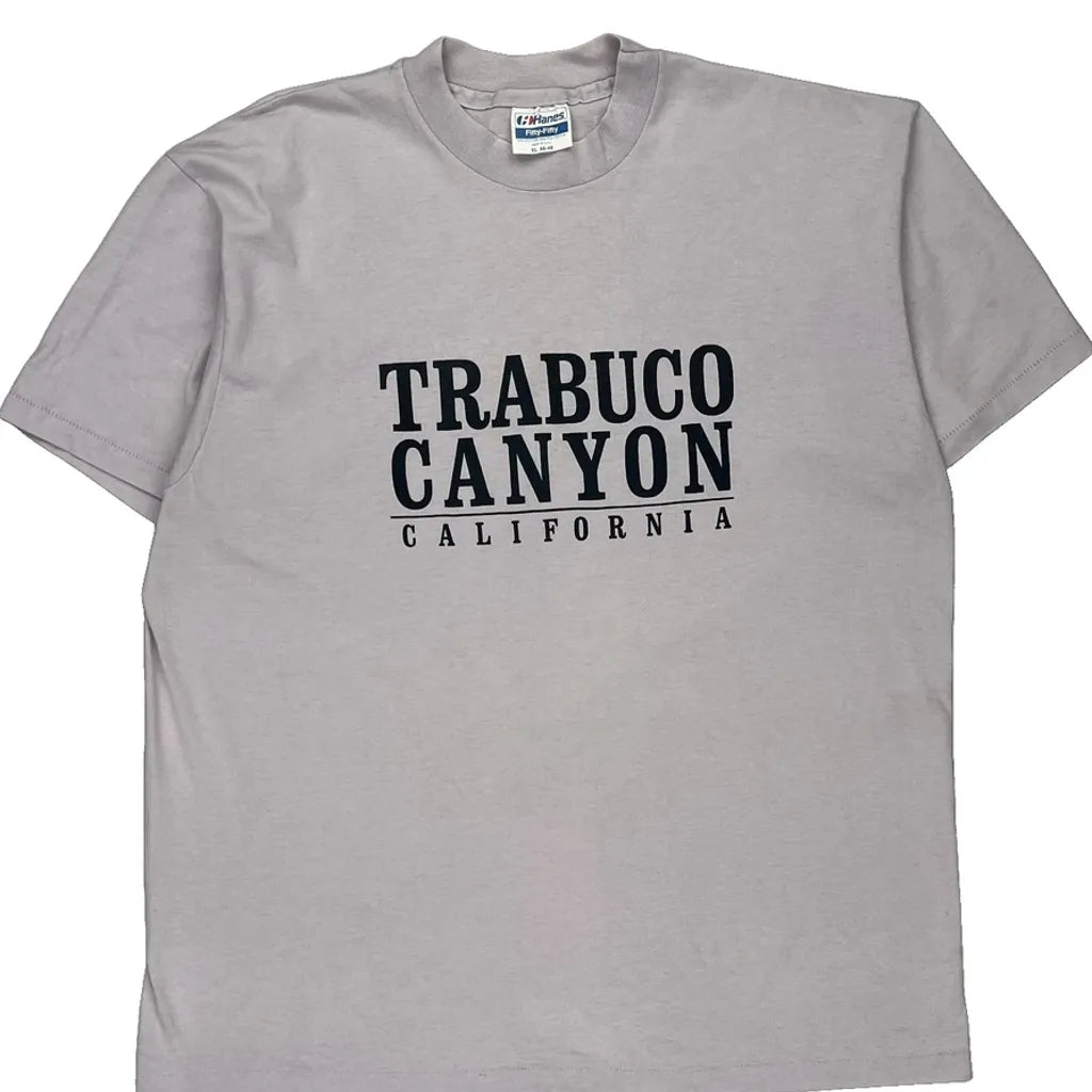 Single Stitch Hanes Graphic T-Shirt - XL Grey Cotton Blend