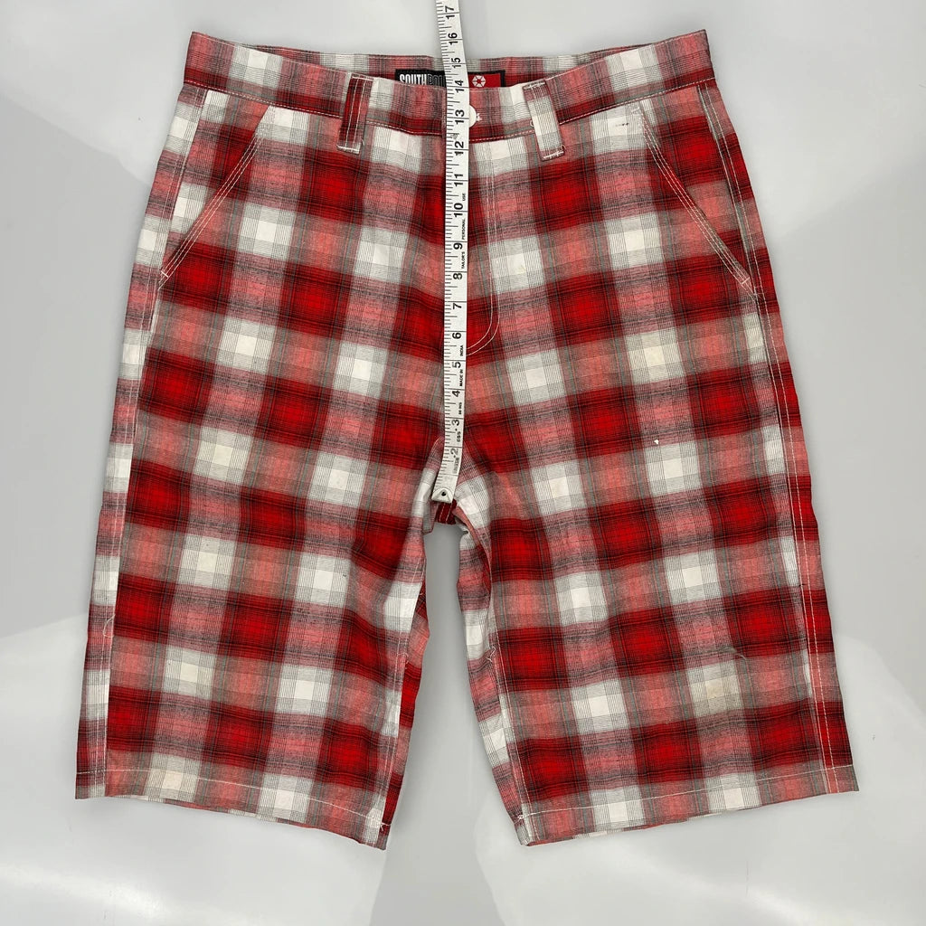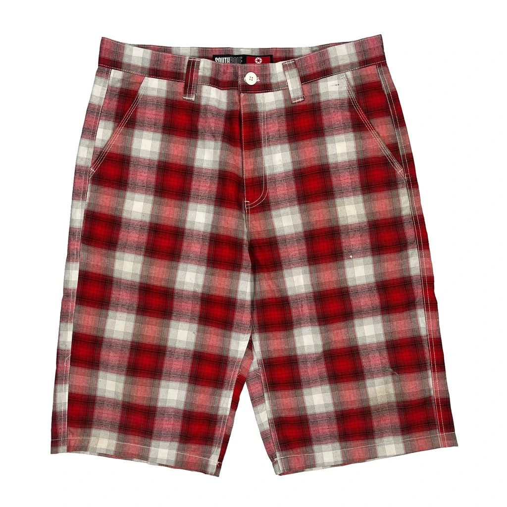 Southpole Checked Shorts - 36W 11L Red Cotton