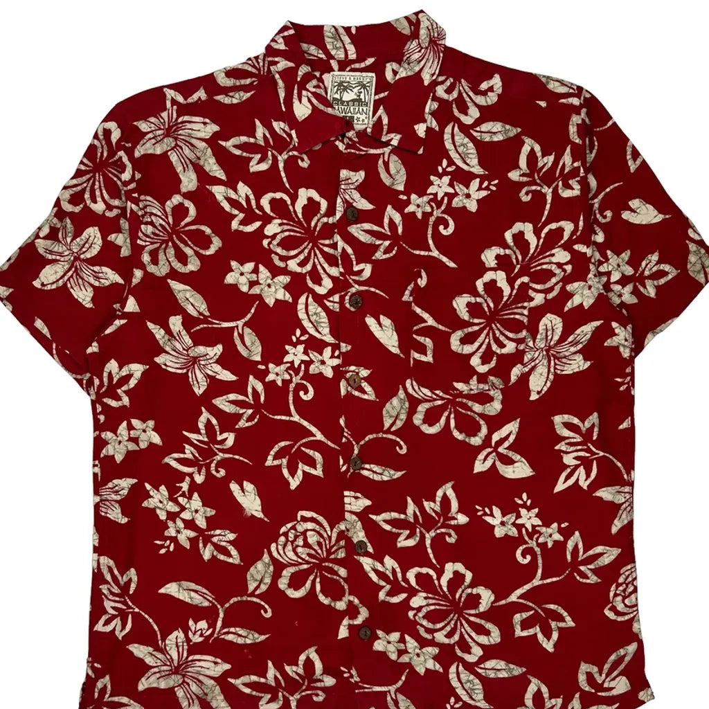 Steve & Barry Floral Hawaiian Shirt - Large Red Viscose