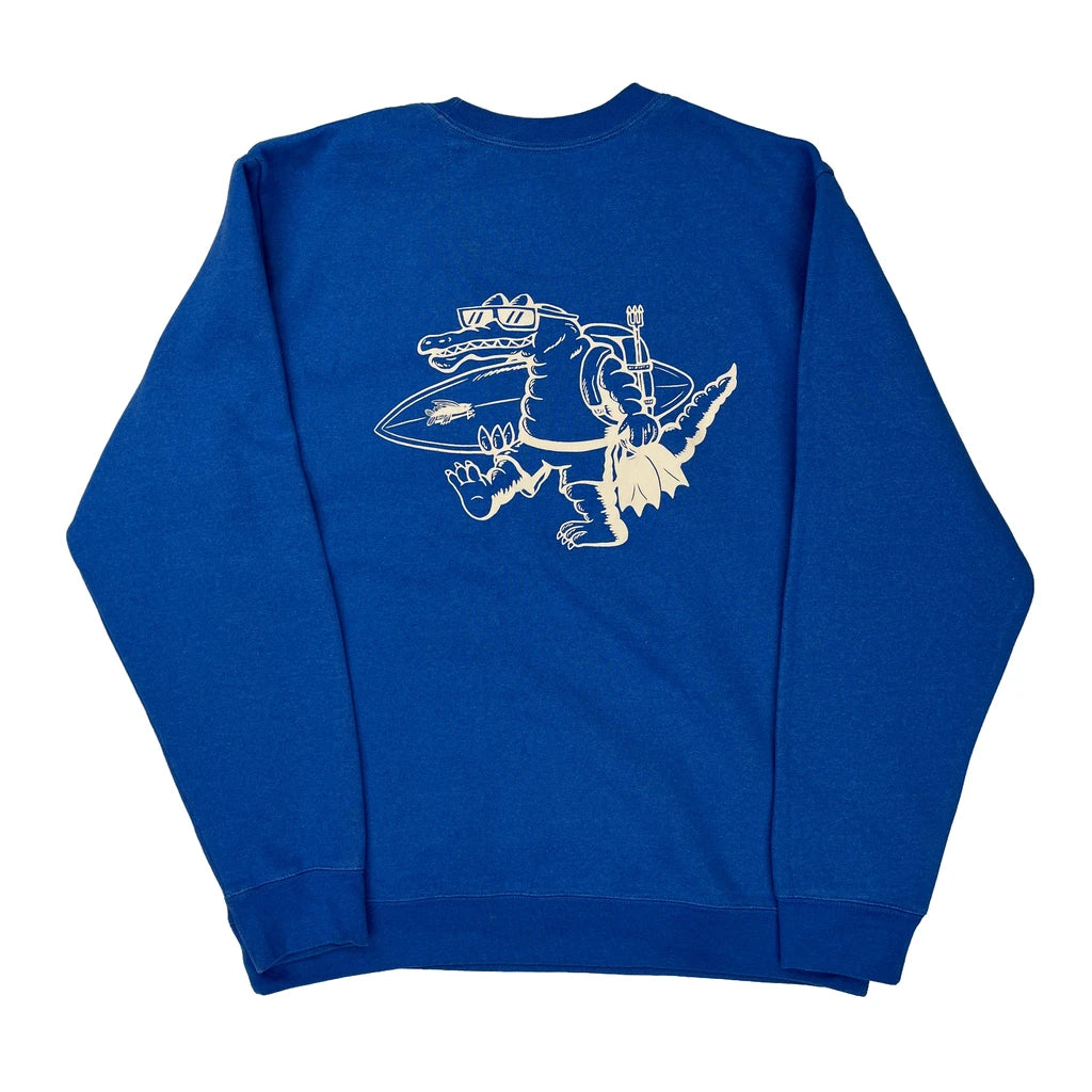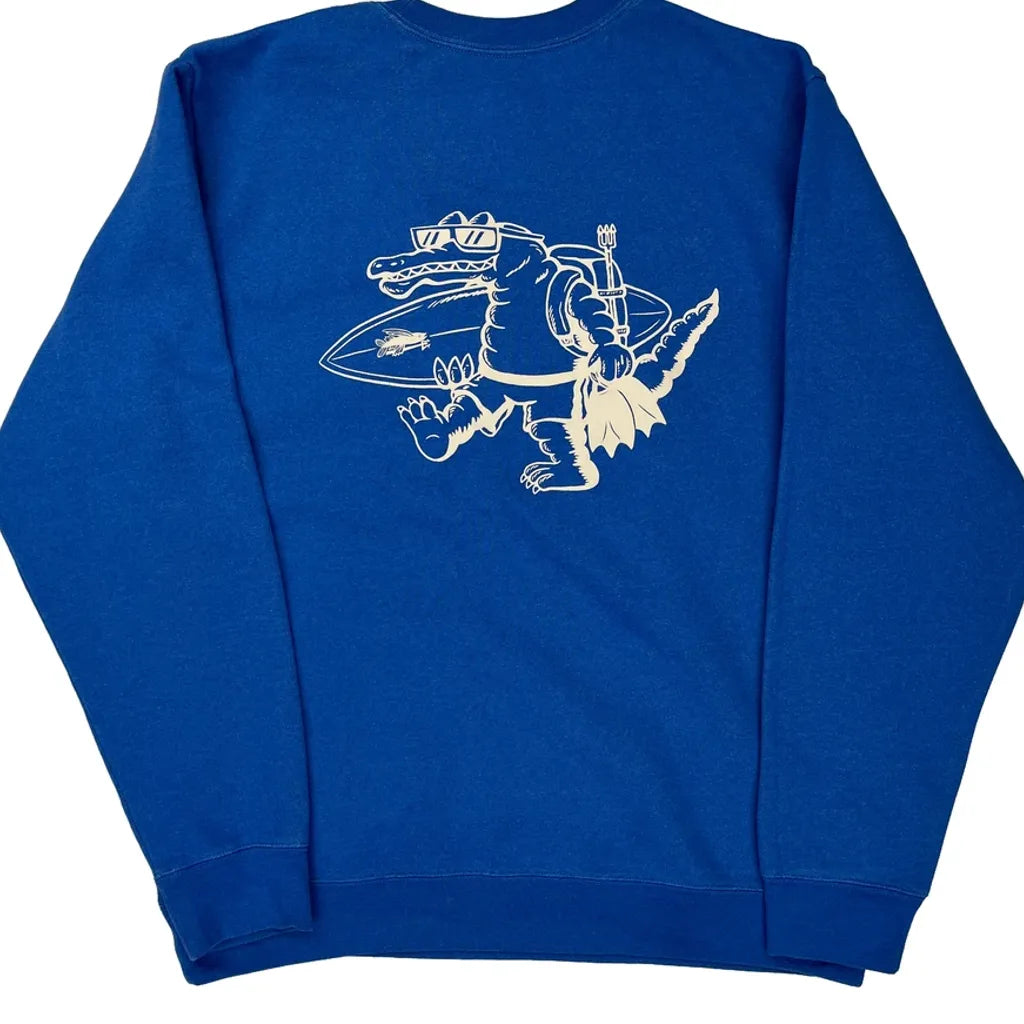 Blue Sweatshirt With A Surfing Alligator Graphic On The Back