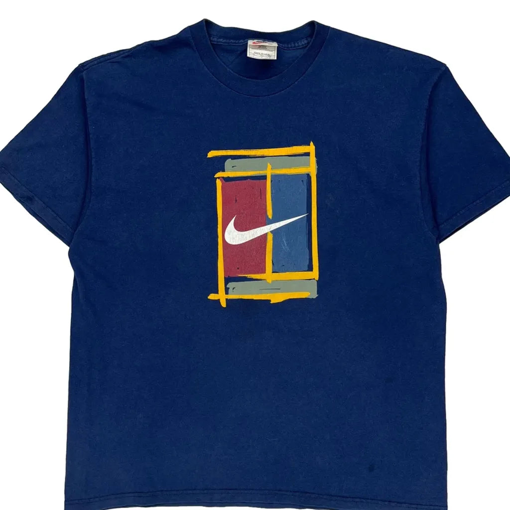 Swoosh Logo Nike Graphic T-Shirt - Large Blue Cotton
