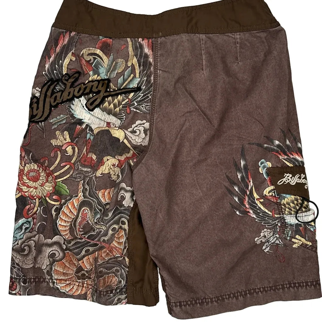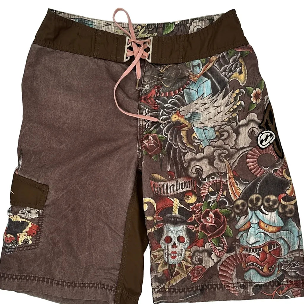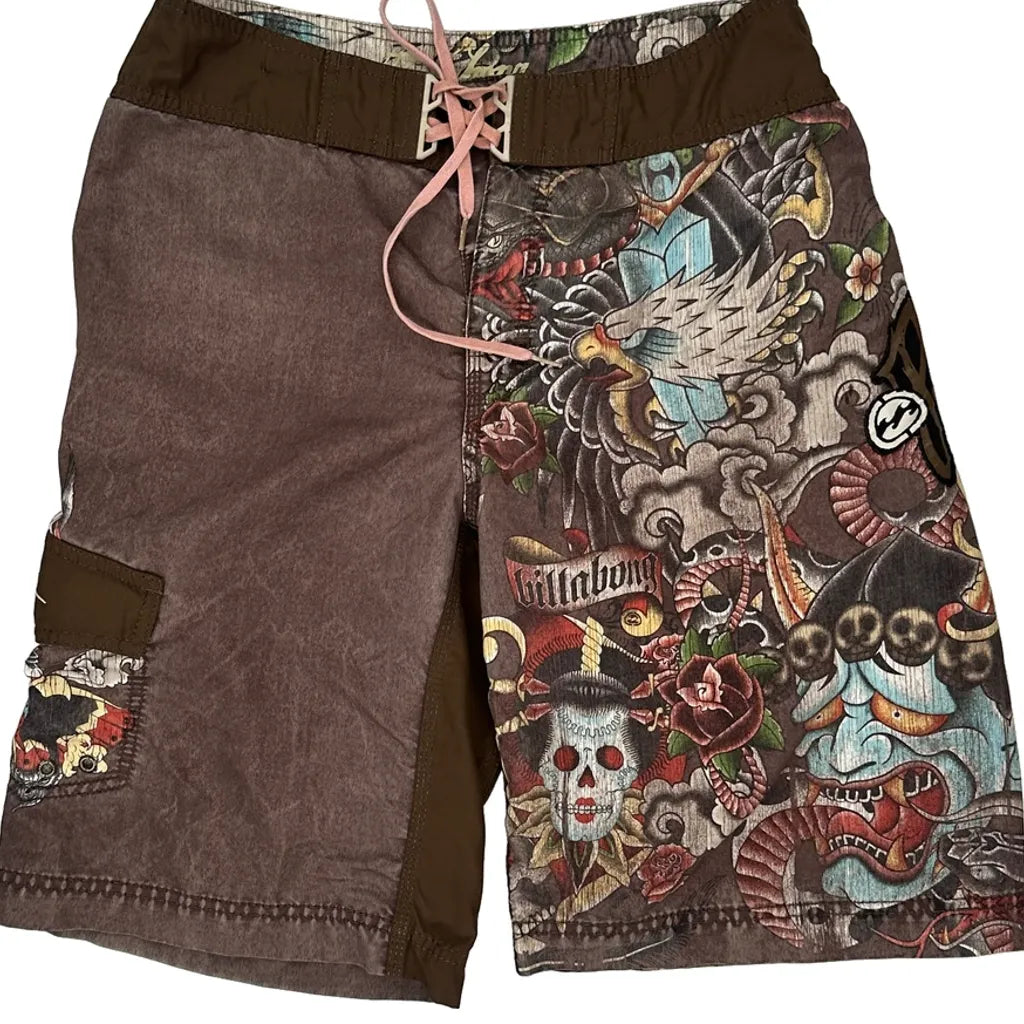 Tattoo-Inspired Design Billabong Graphic Shorts - 32″ Waist Brown Polyester