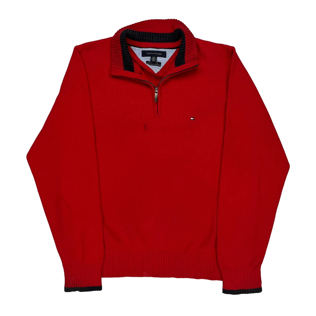 Tommy Hilfiger 1/4 Zip - Large Red Cotton