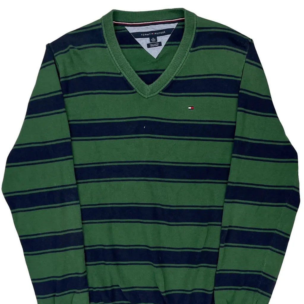 Tommy Hilfiger Striped Jumper - XL Green Cotton