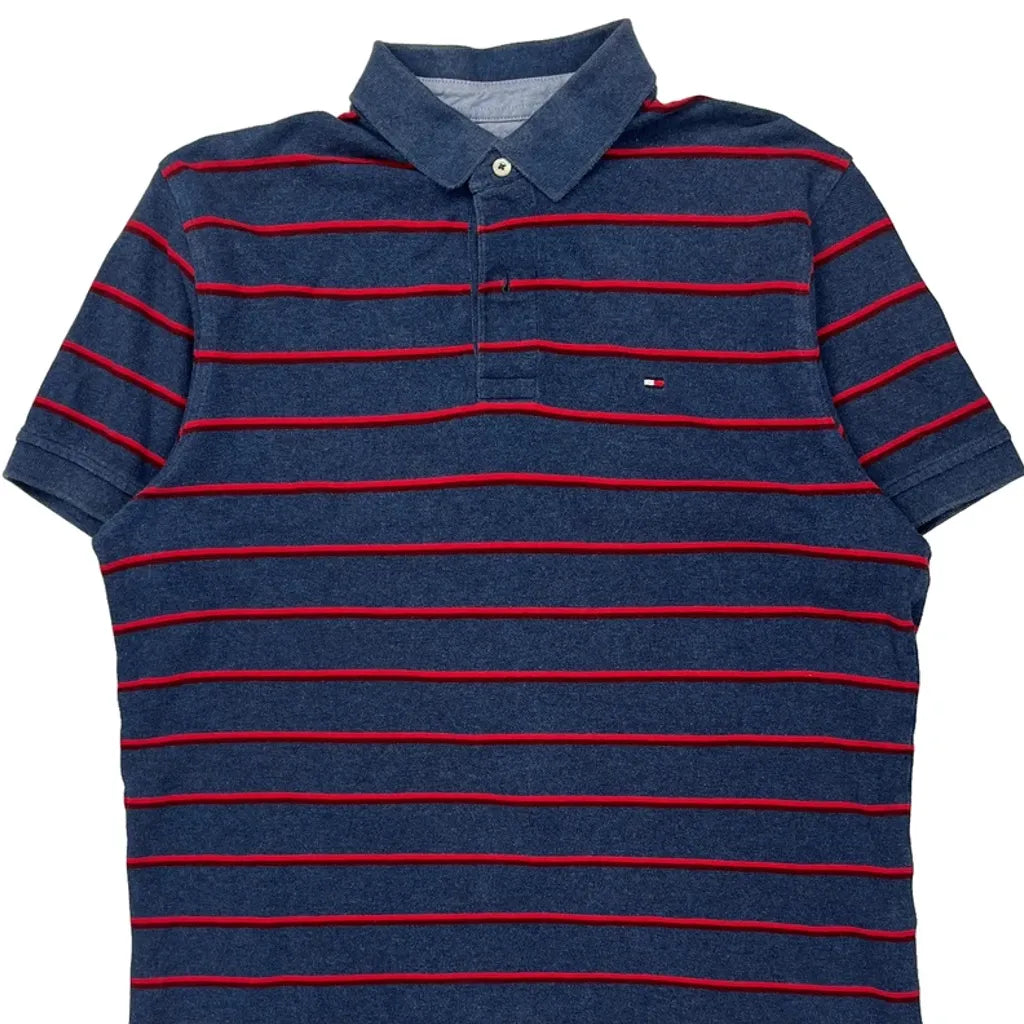 Tommy Hilfiger Striped Polo Shirt - Medium Blue Cotton