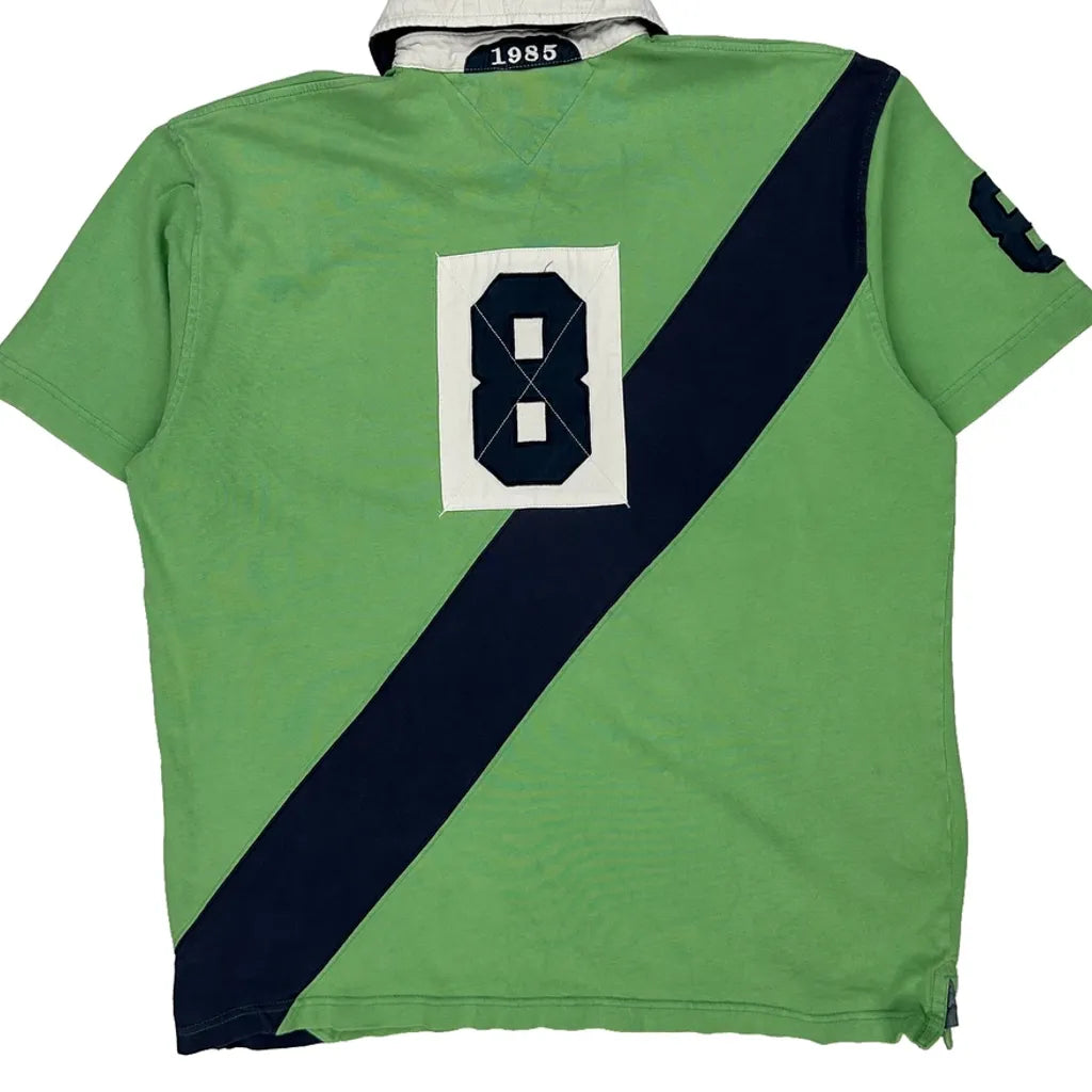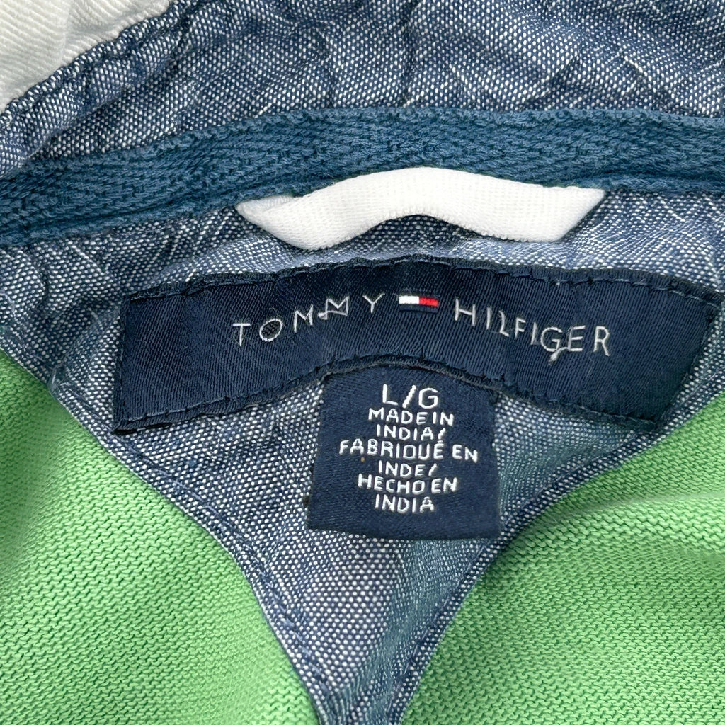 Tommy Hilfiger Striped Polo Shirt - Large Green Cotton