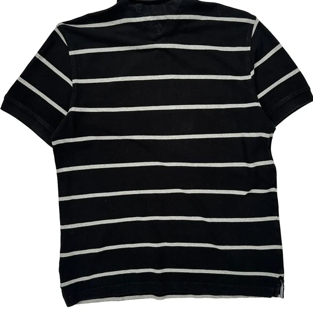Tommy Hilfiger Striped Polo Shirt - Large Grey Cotton