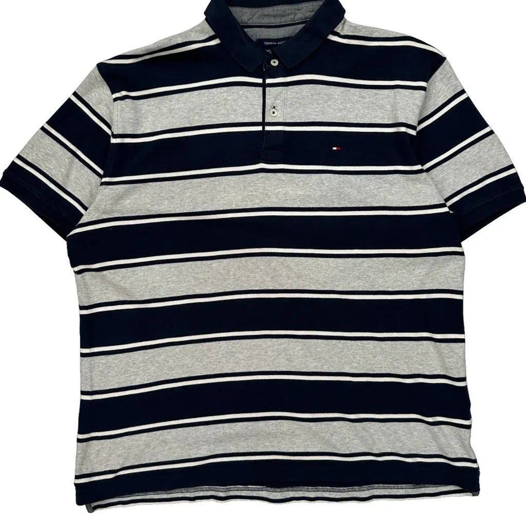Tommy Hilfiger Striped Polo Shirt - XL Grey Cotton