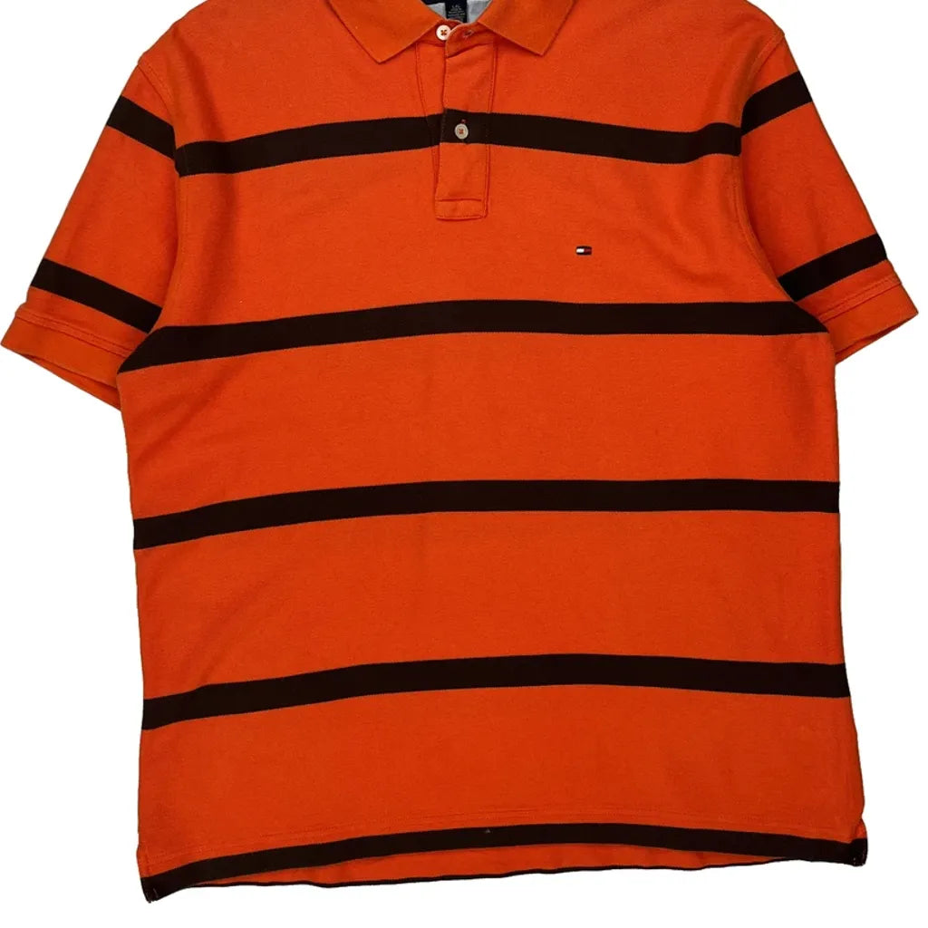 Tommy Hilfiger Striped Polo Shirt - Large Orange Cotton